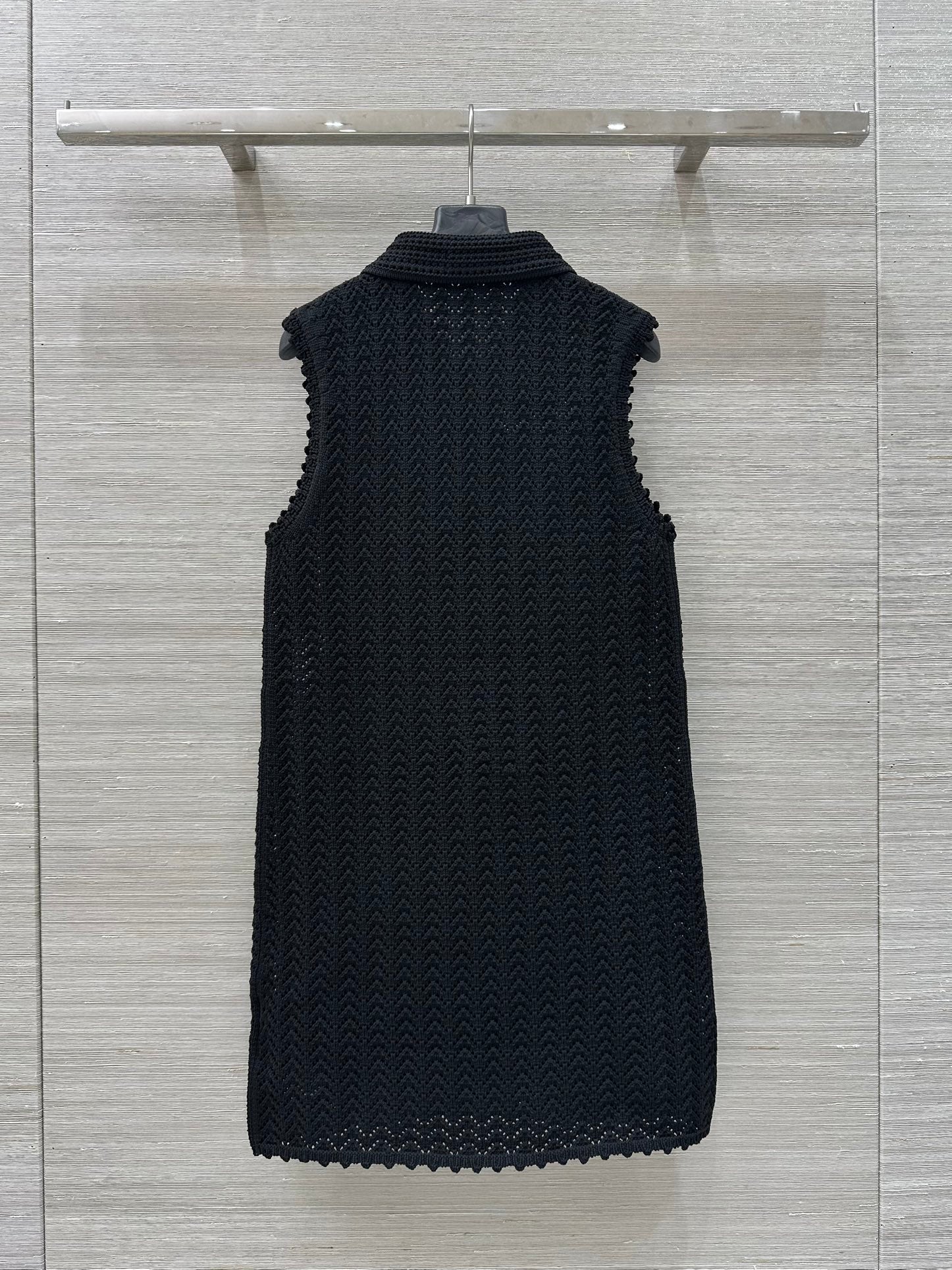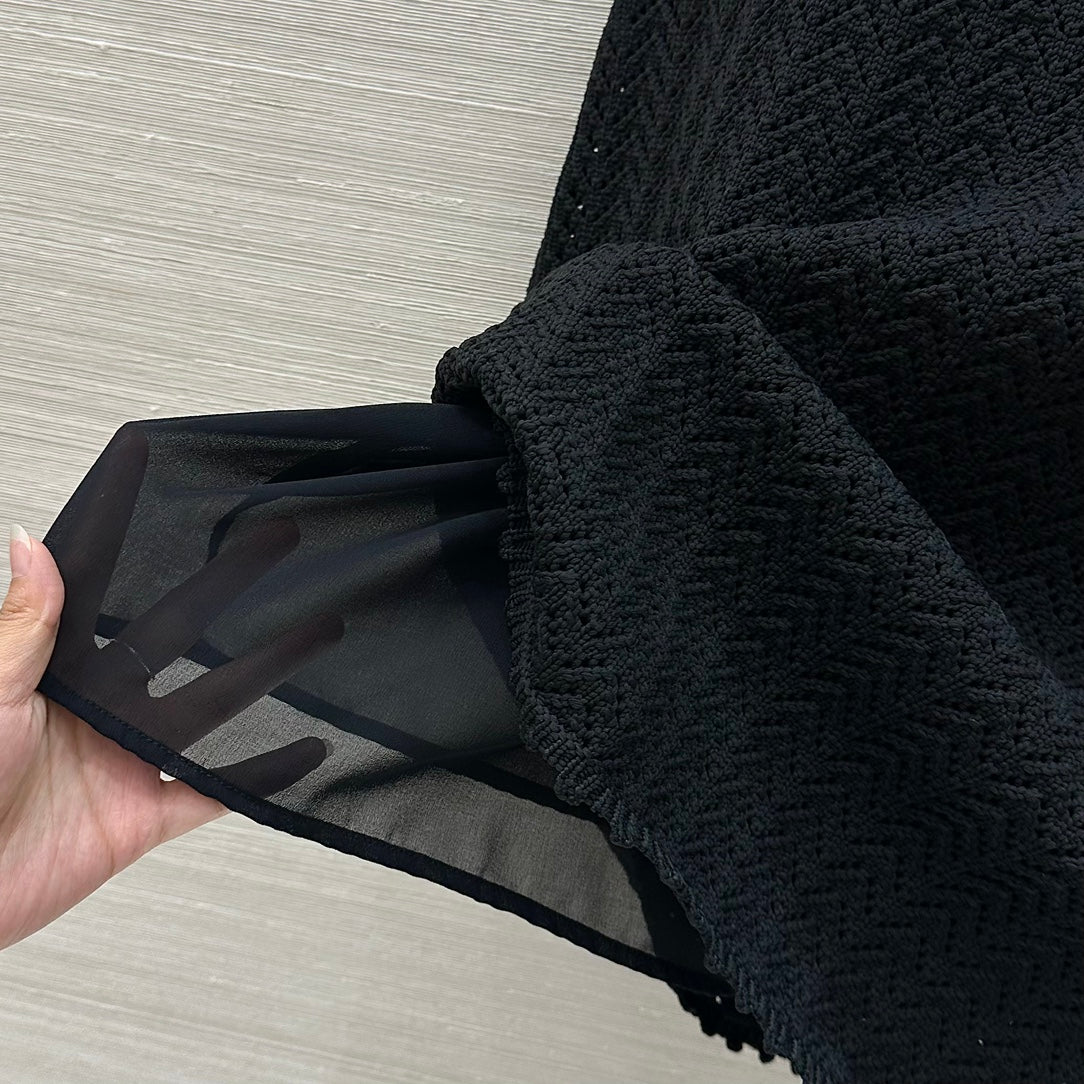 Gucci 25 Hollow Knitted Polo Vest Dress Black Polyester Fiber
