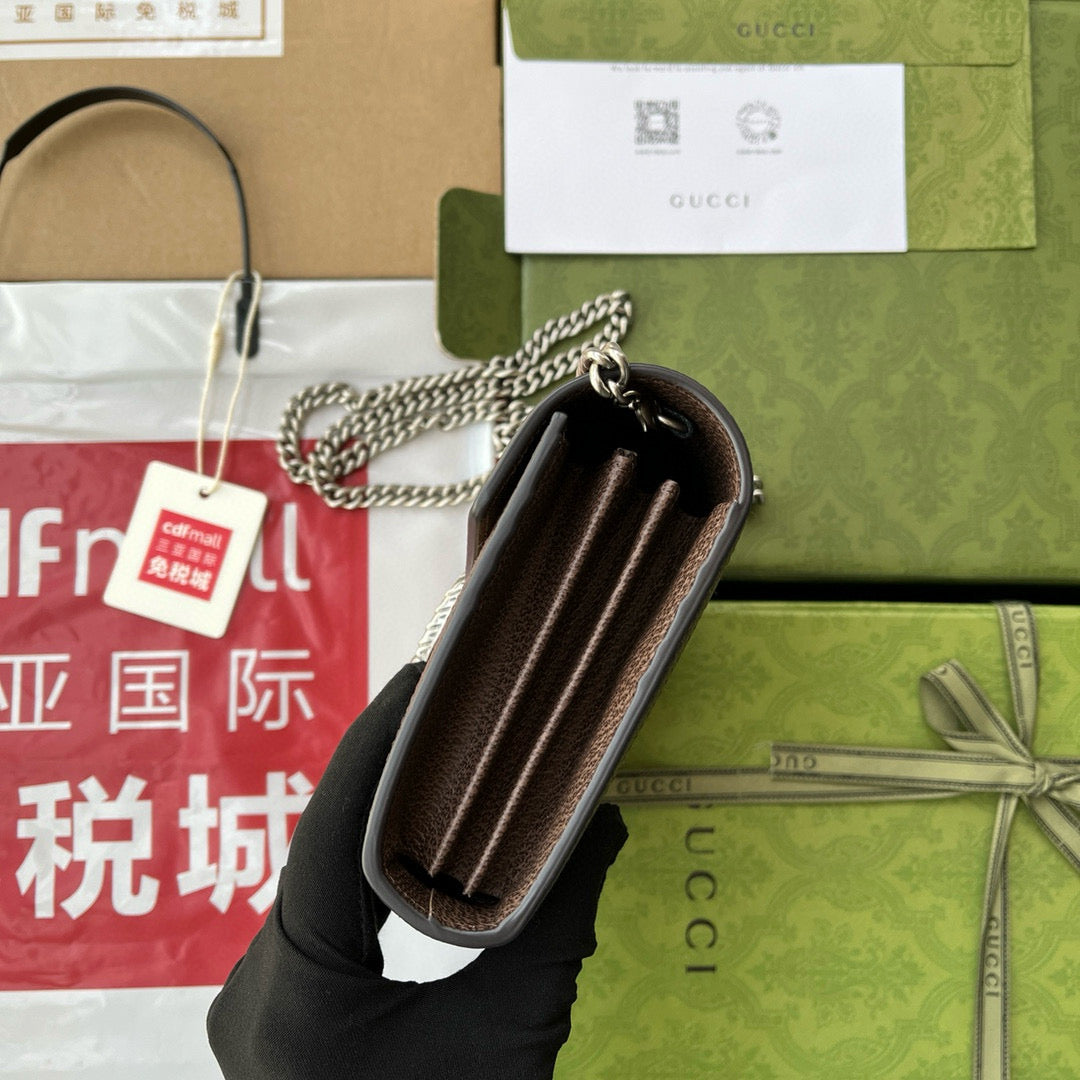 Gucci Jumbo Dionysus Wallet On Chain Brown Canvas and GG Original Leather