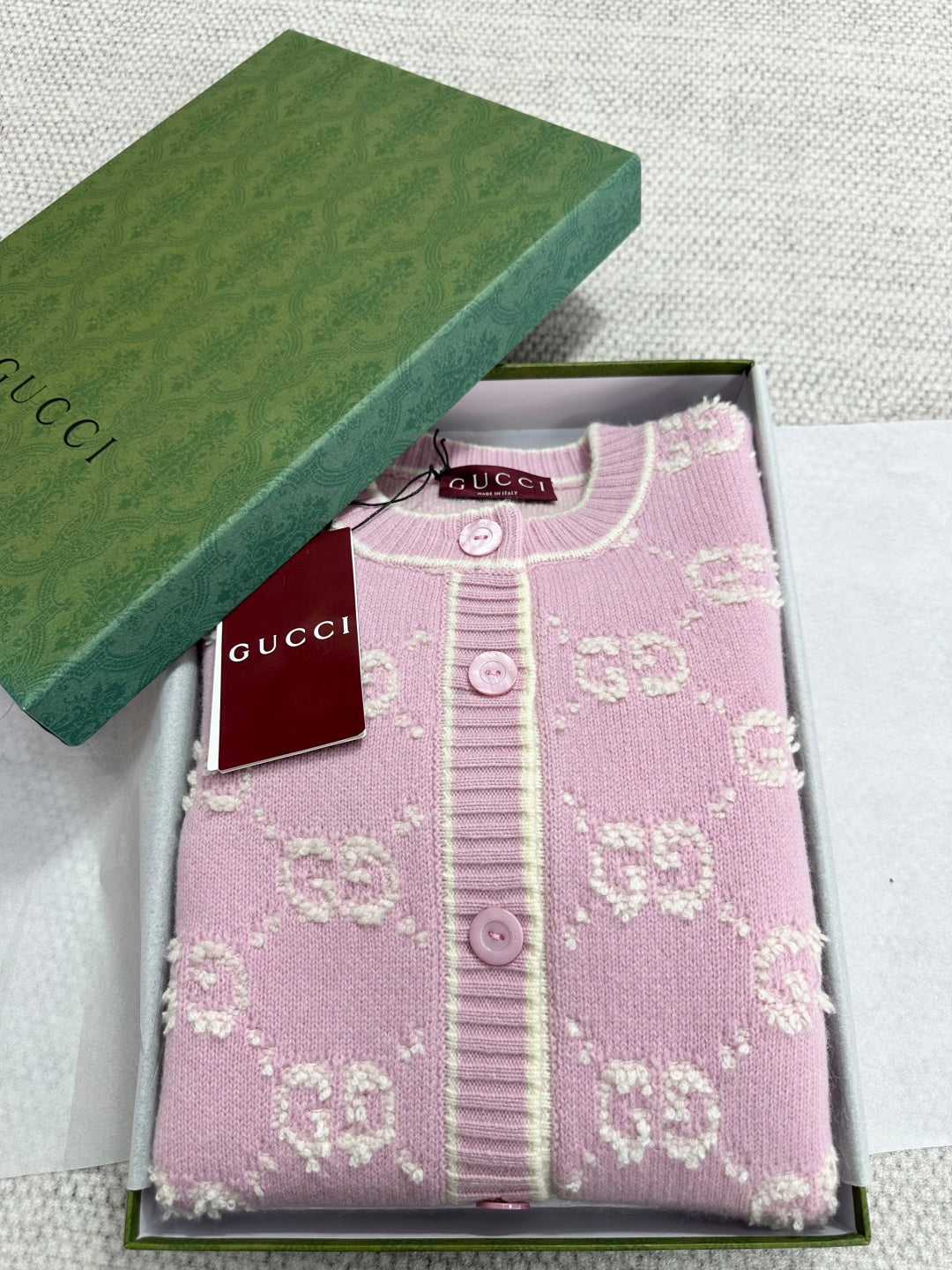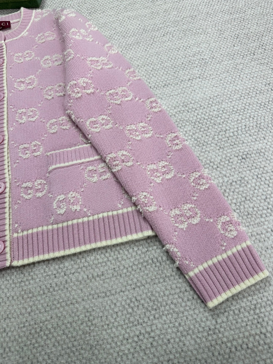 Gucci Knot Jacquard Knitted Cardigan Pink Wool