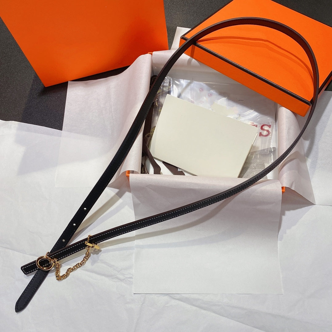 WOMEN'S BELT H GOLD BUCKLE BLACK LEATHER STRAP 1.3CM