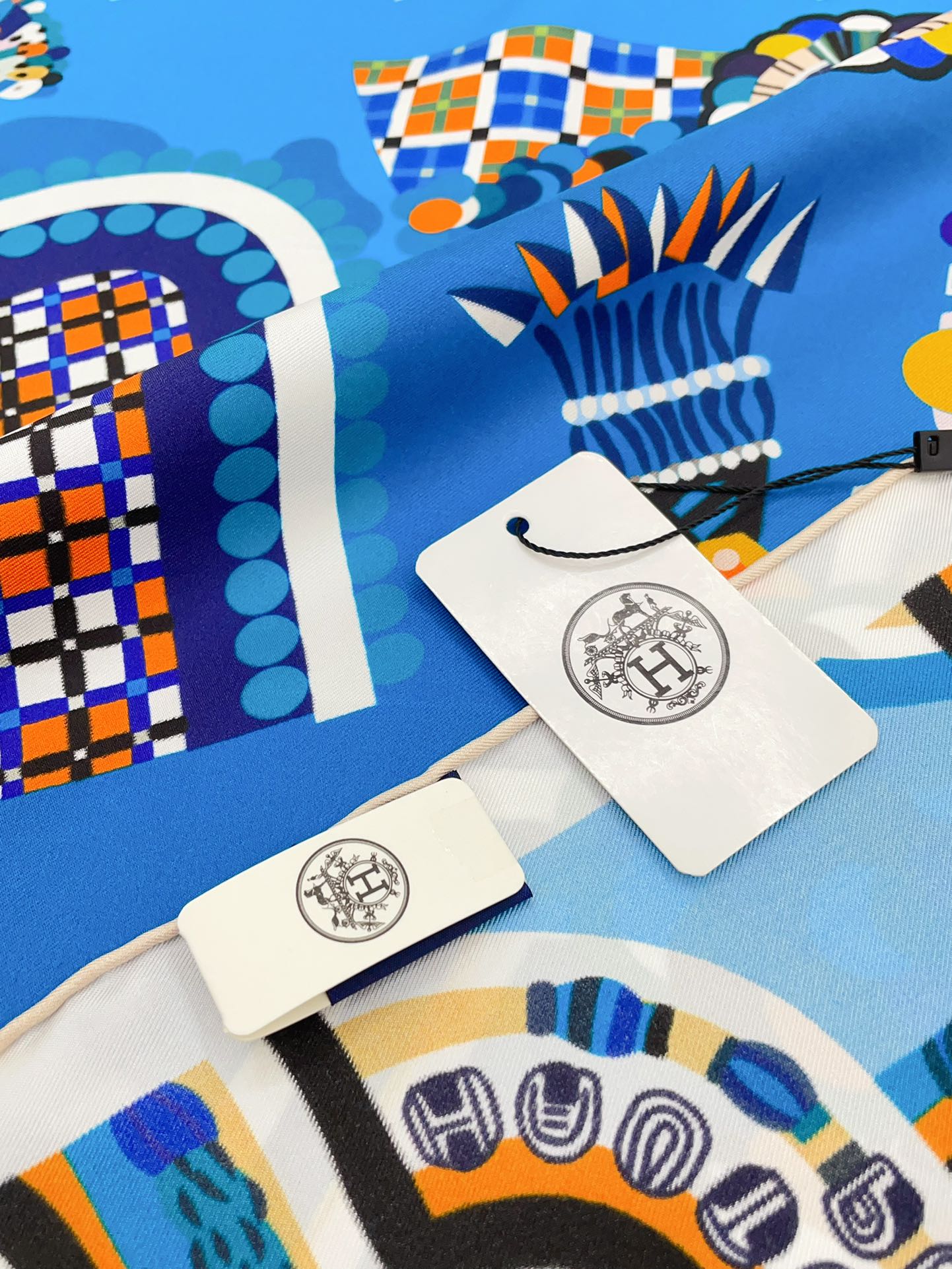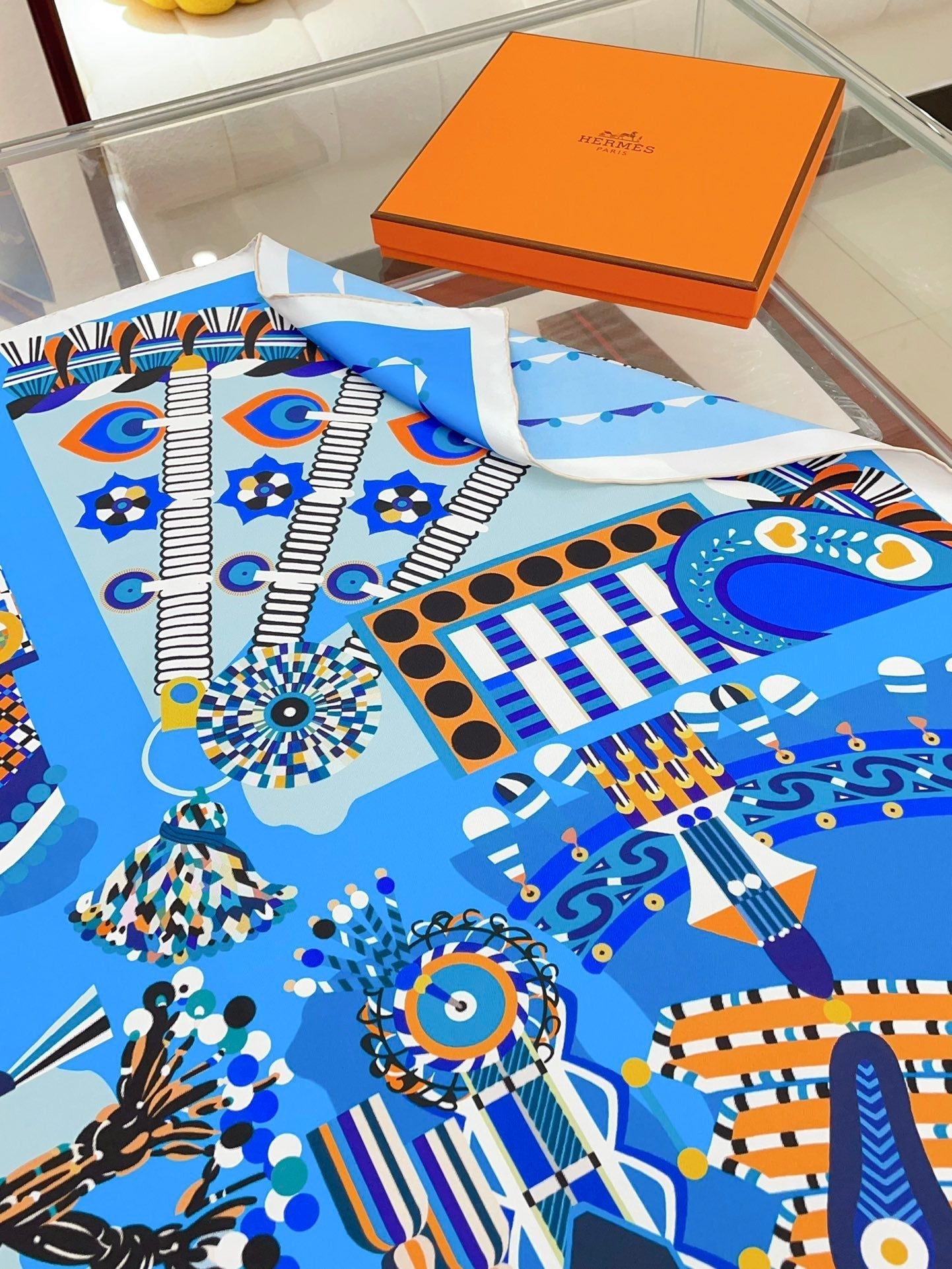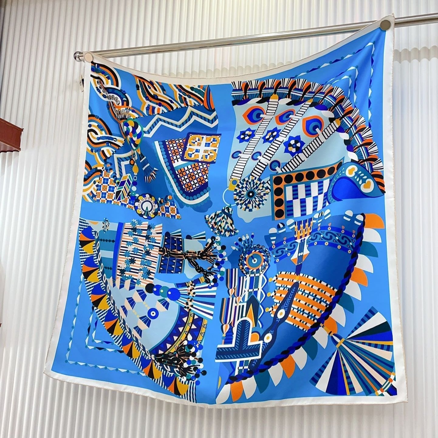 Haute Parure Scarf 90 CM In Blue Colorful Silk Twill 239535