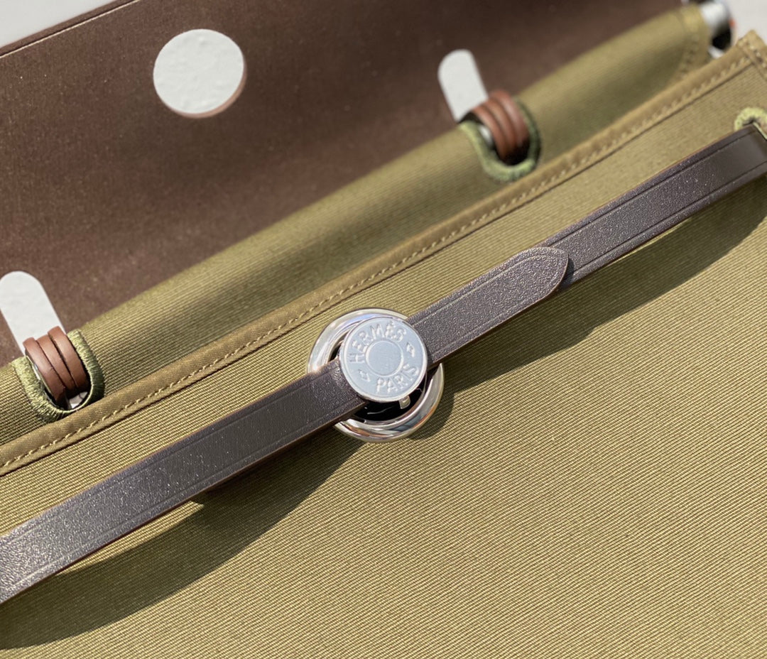 Herbag 31 Toile Olive Canvas Black Cowhide Leather