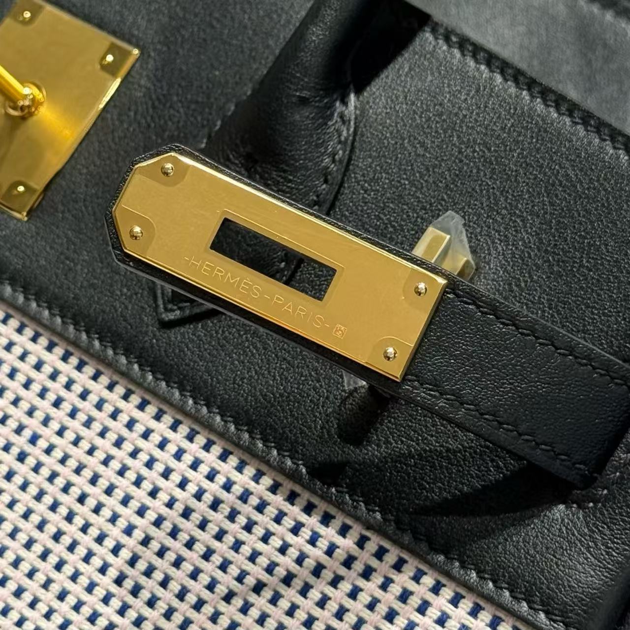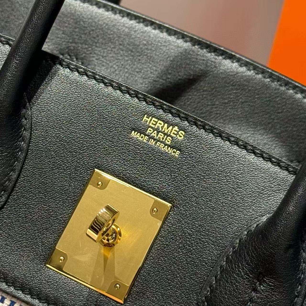 HM 2025 Birkin 30cm Black White Swift Cowhide Canvas Fabric With Waffle Panda