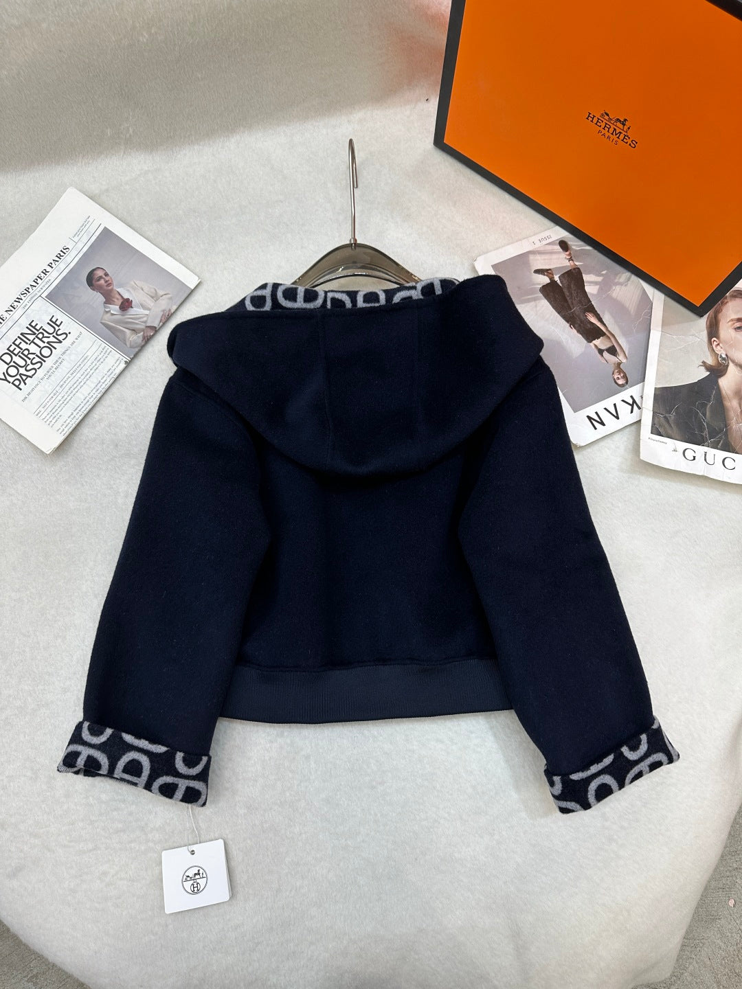 HM 25 Navy Blue Cashmere Cropped Coat 280337
