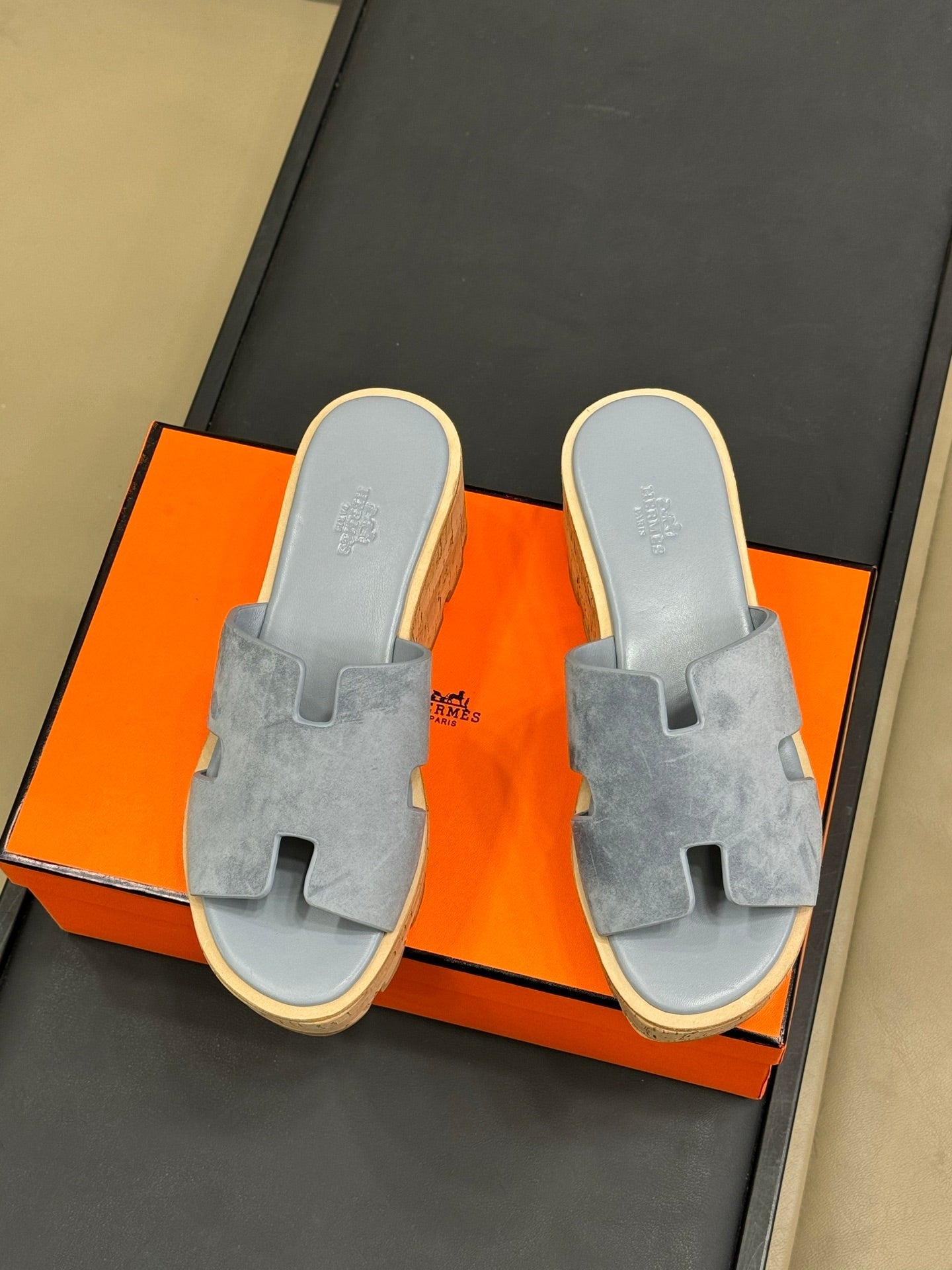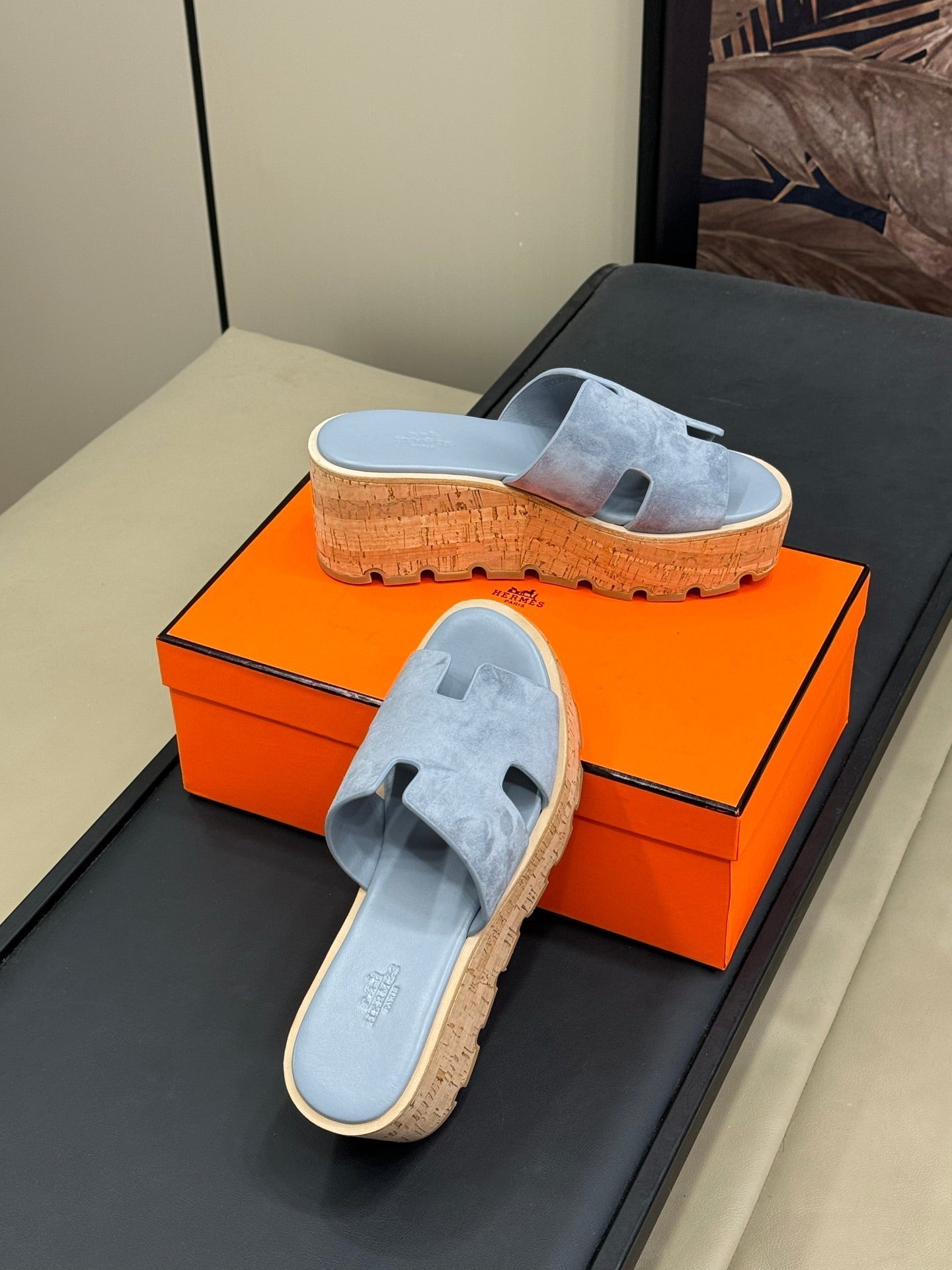 - Material: Suede and Wood