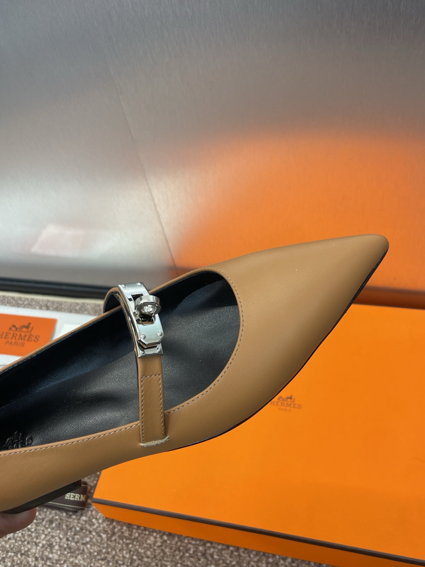 HM 25C Kelly Ballet Flat Brown Calfskin 208269