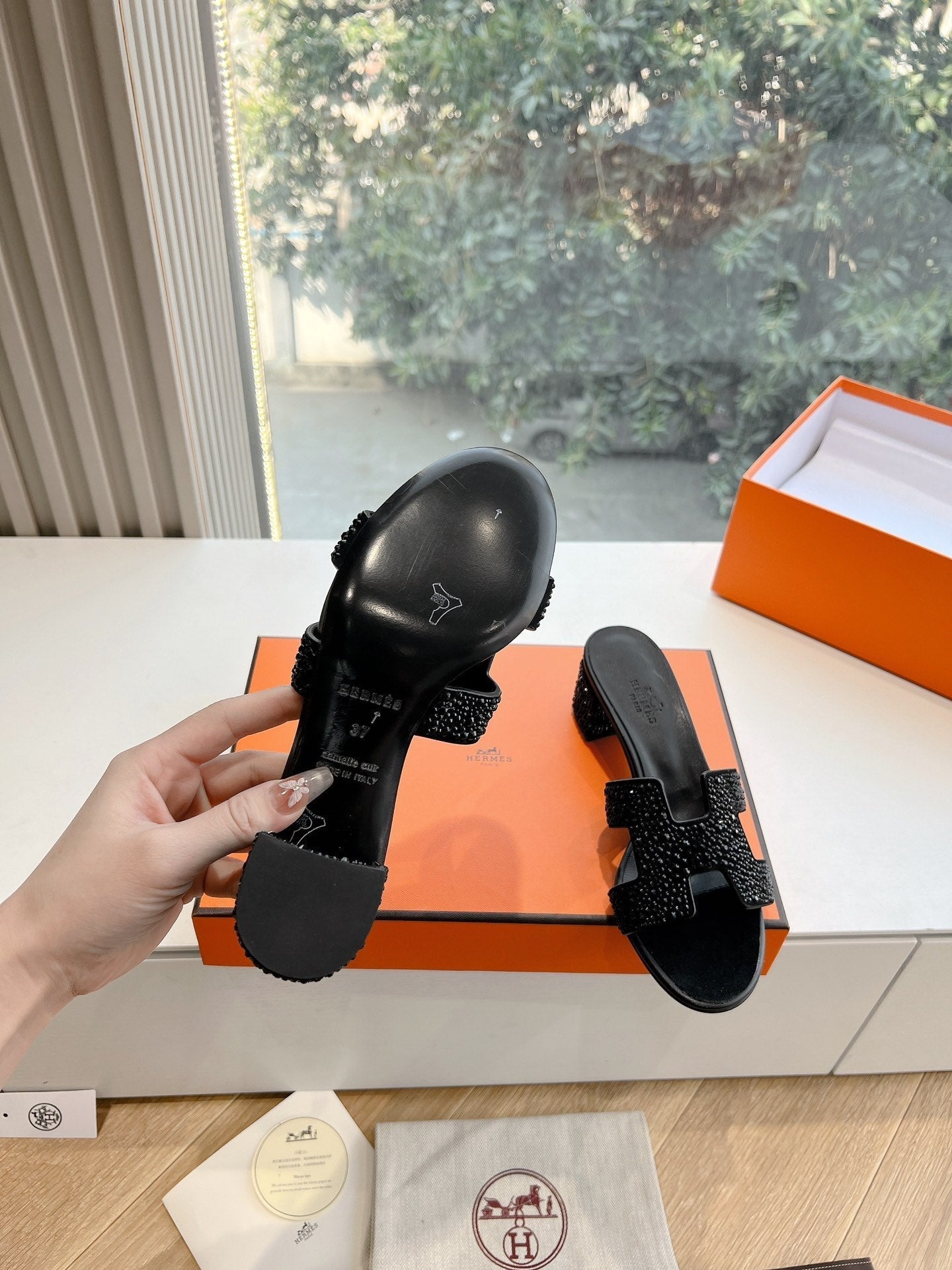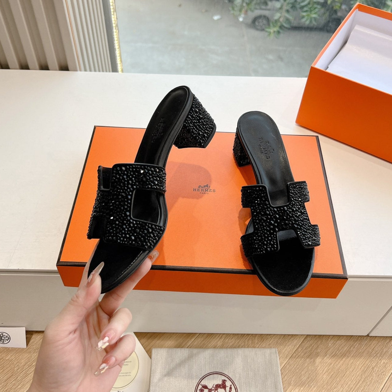 HM 25C Oasis Sandal Black Leather With Rhinestone 202835
