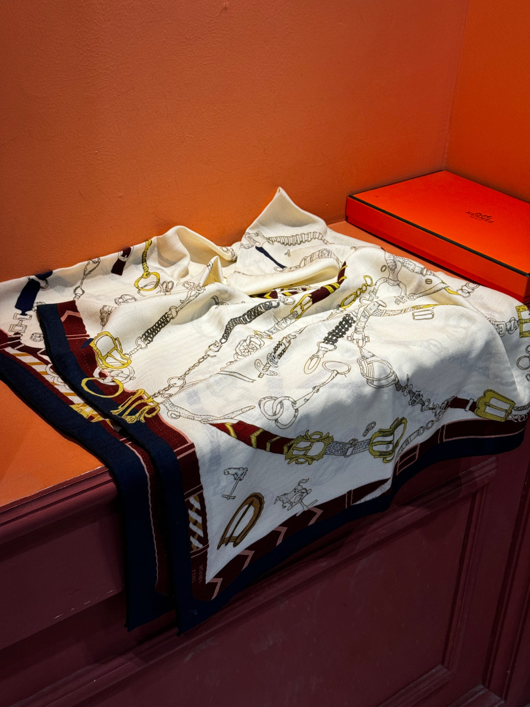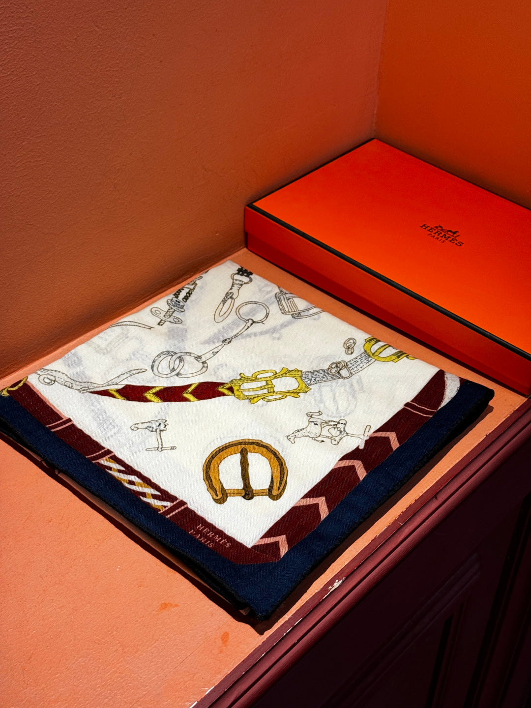 HM 25s Horse Reversible Scarf 140cm Beige Black Cashmere Silk 967393