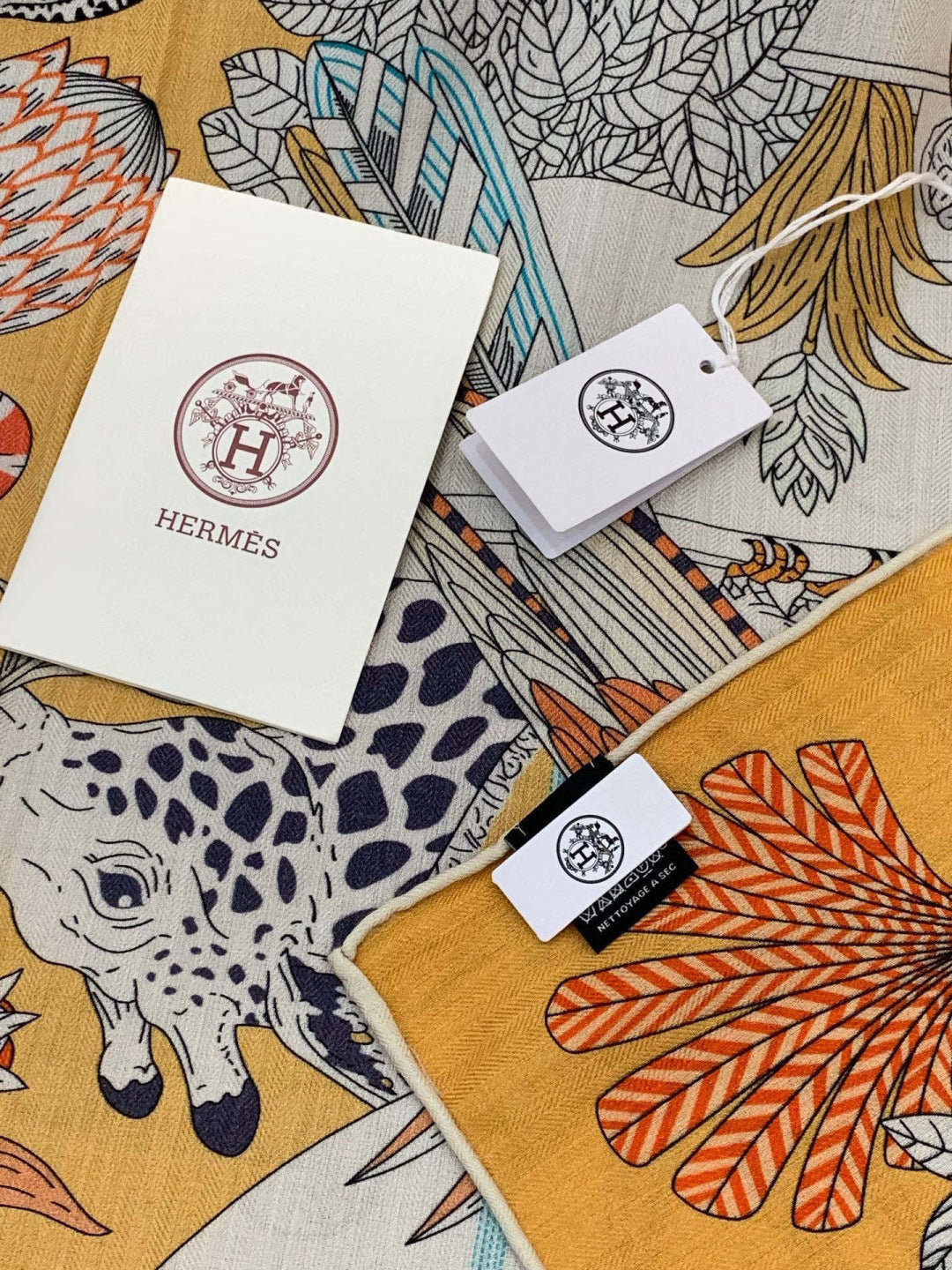 HM 25s Rainbow Scarf 140cm Yellow Colorful Cashmere Silk 970925