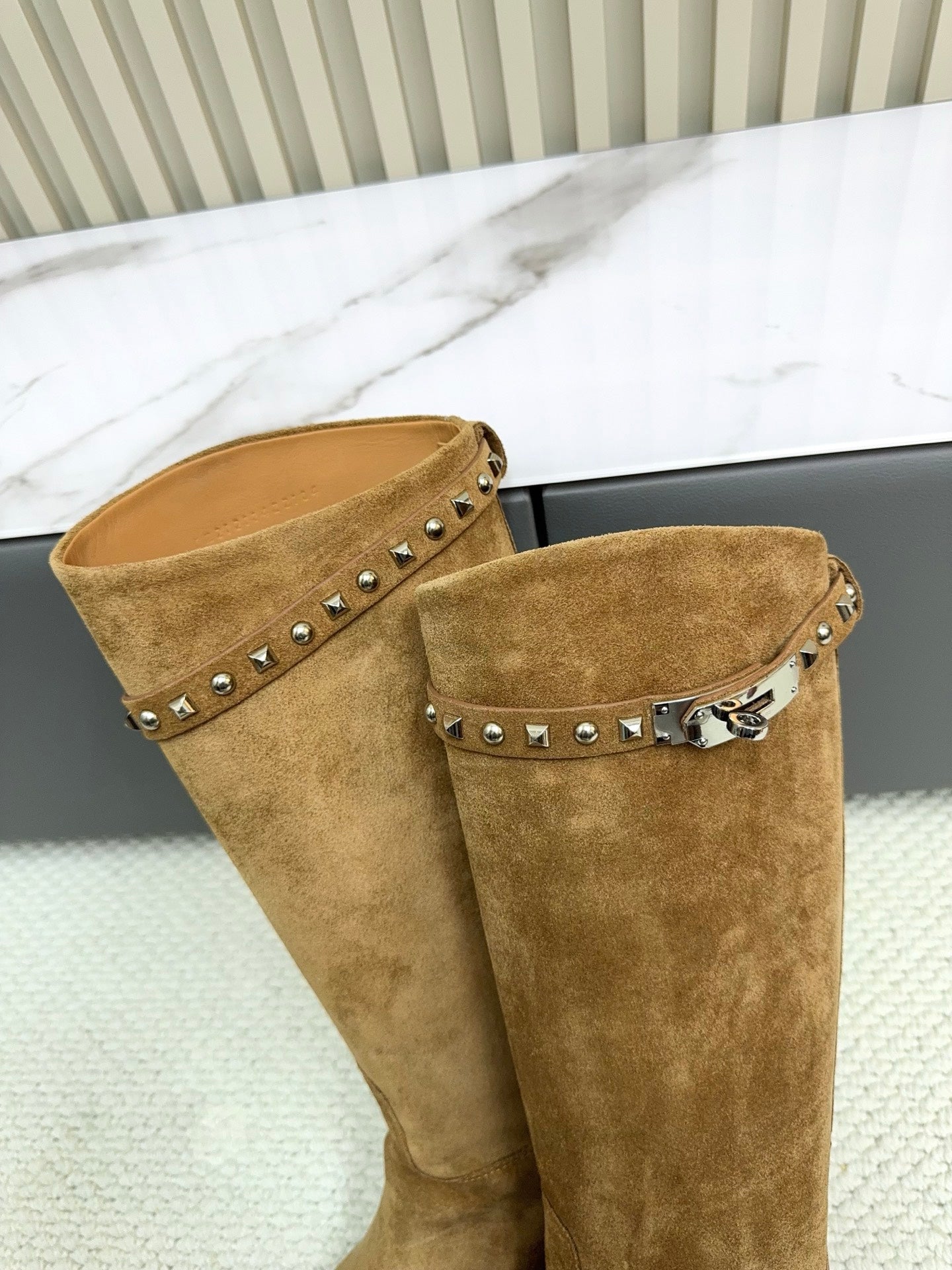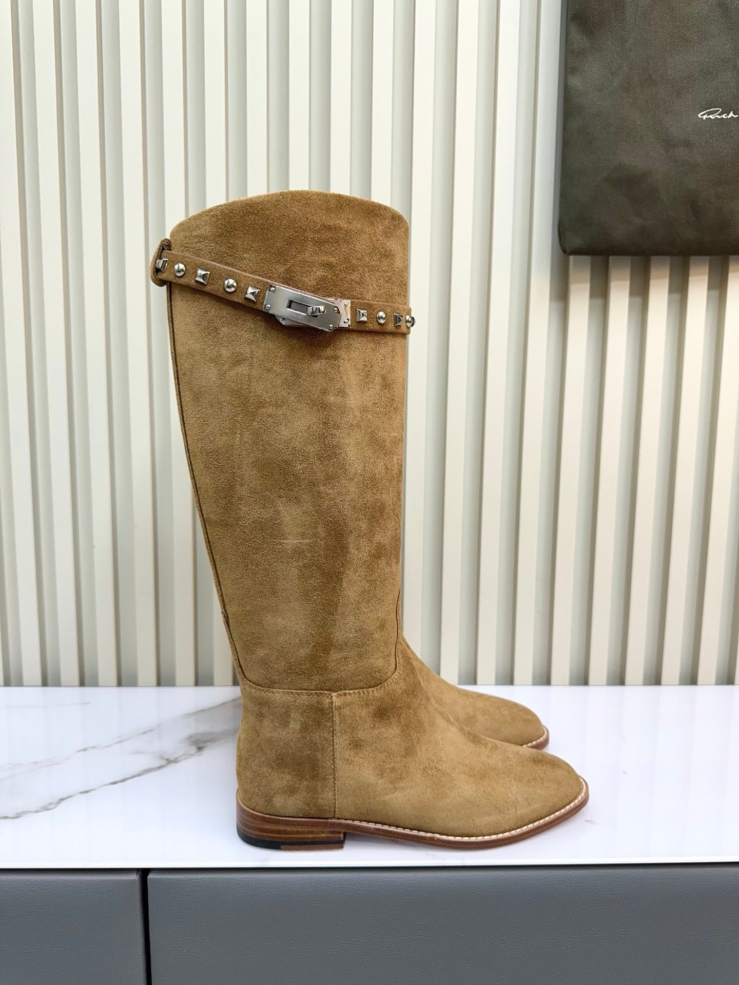 HM 25ss Kelly Buckle Riding Boots Brown Suede 576116