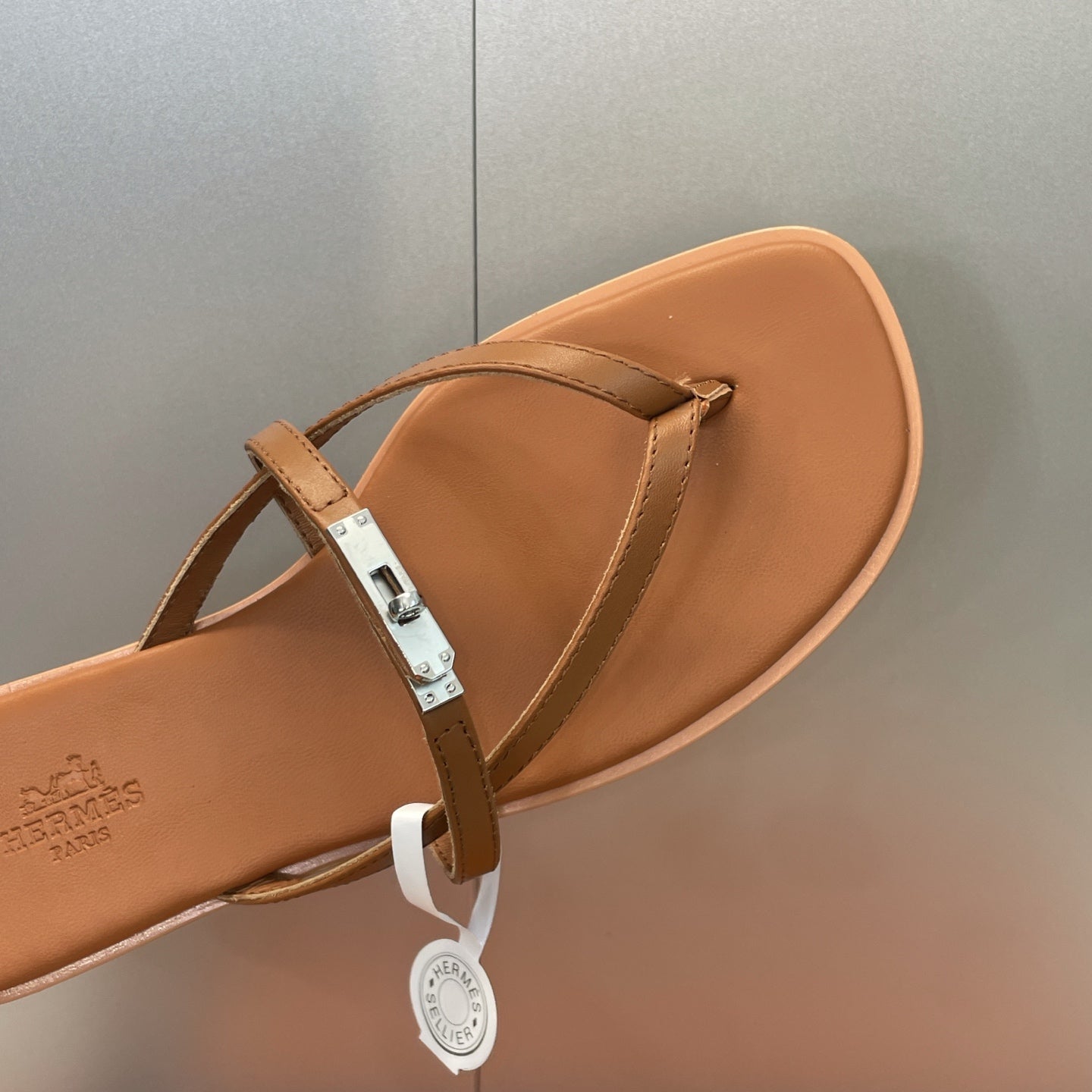 HM 26ss Kelly Sliver Buckle Slipper Brown Calfskin 607155