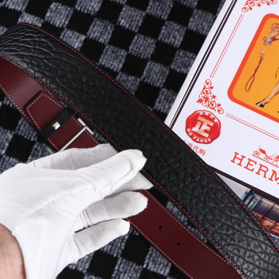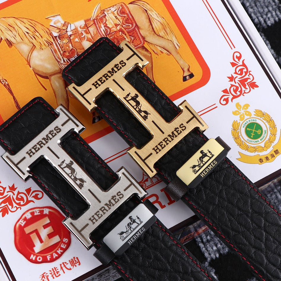 HM Belt 38mm Black Cowhide Leather Sliver Buckle 619054