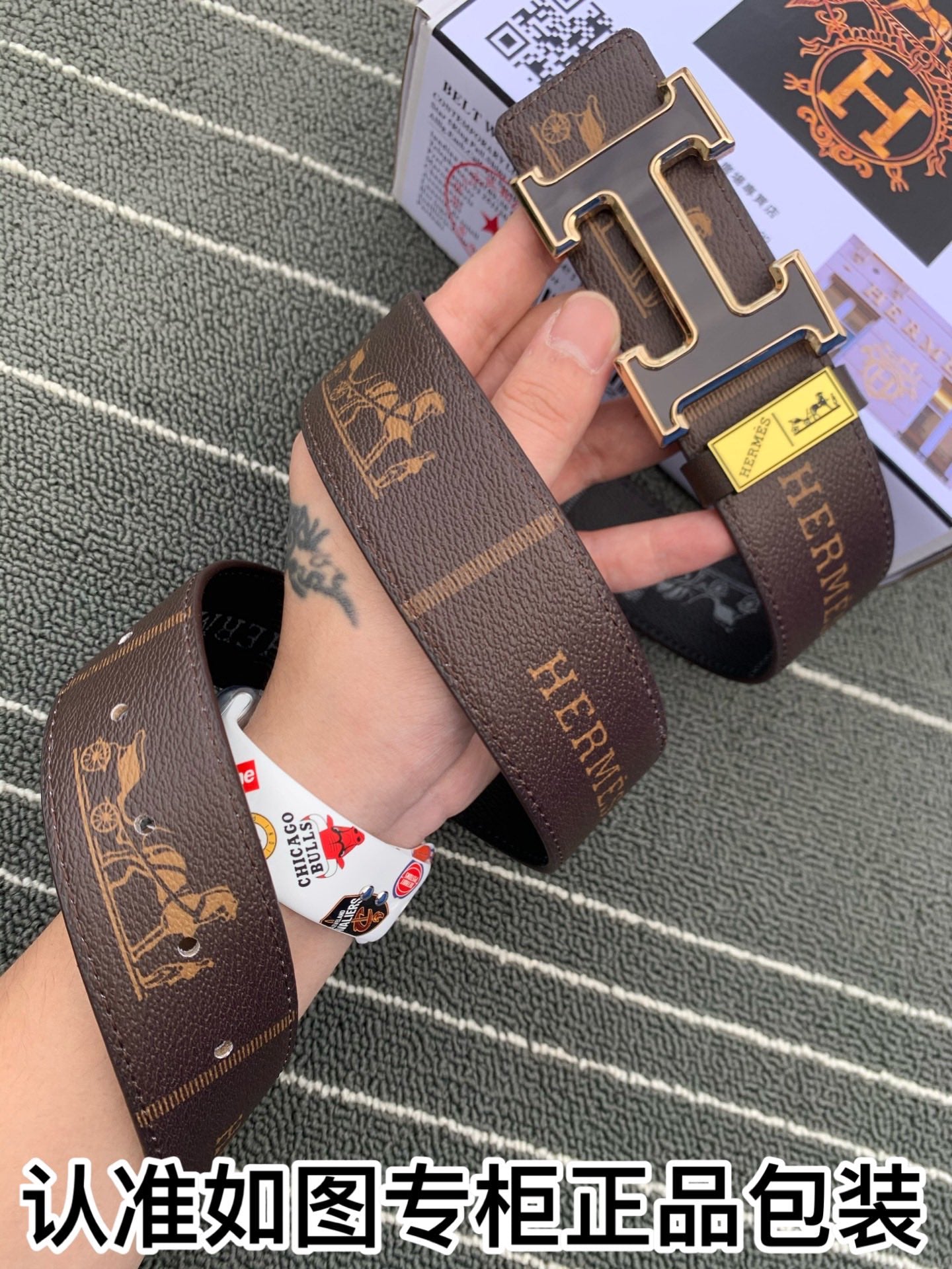 • H Buckle in permabrass plated metal.