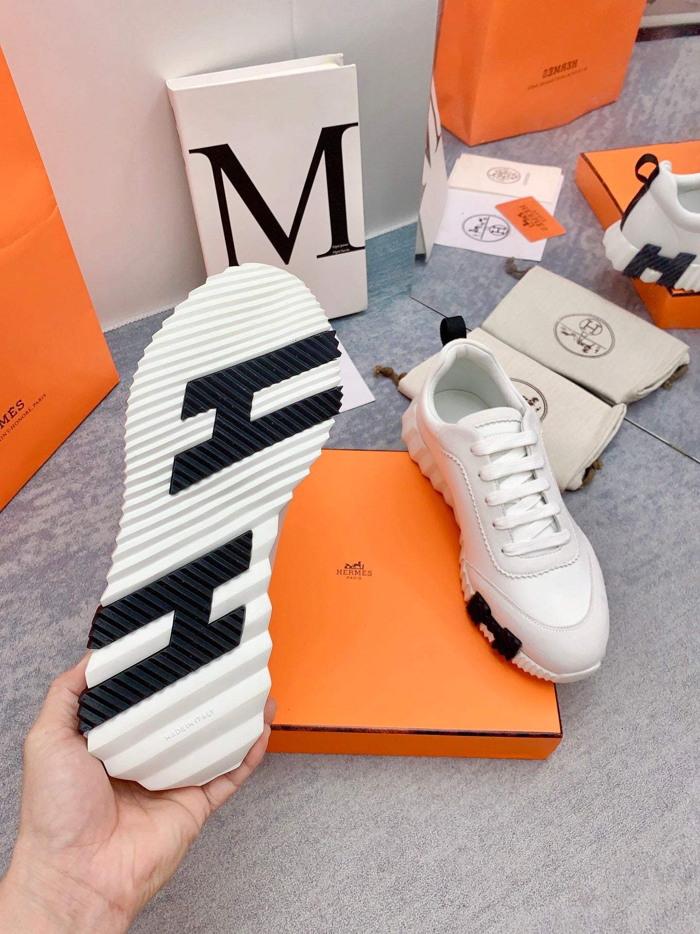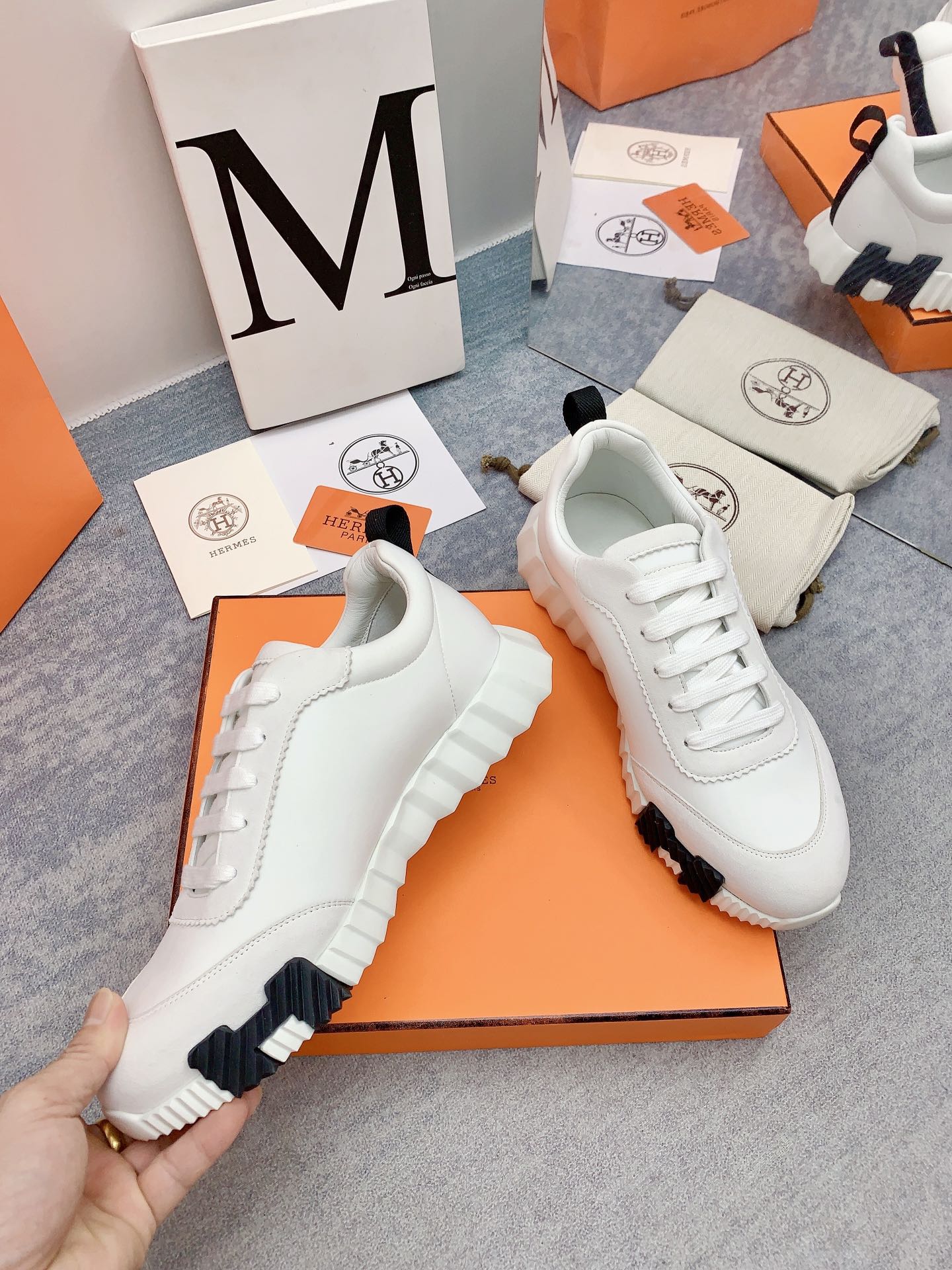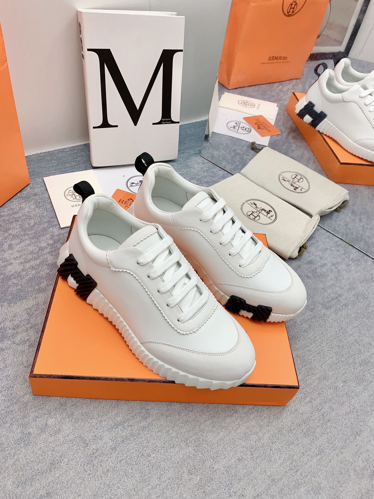 HM Bouncing Sneaker In White Silk Lambskin 106449