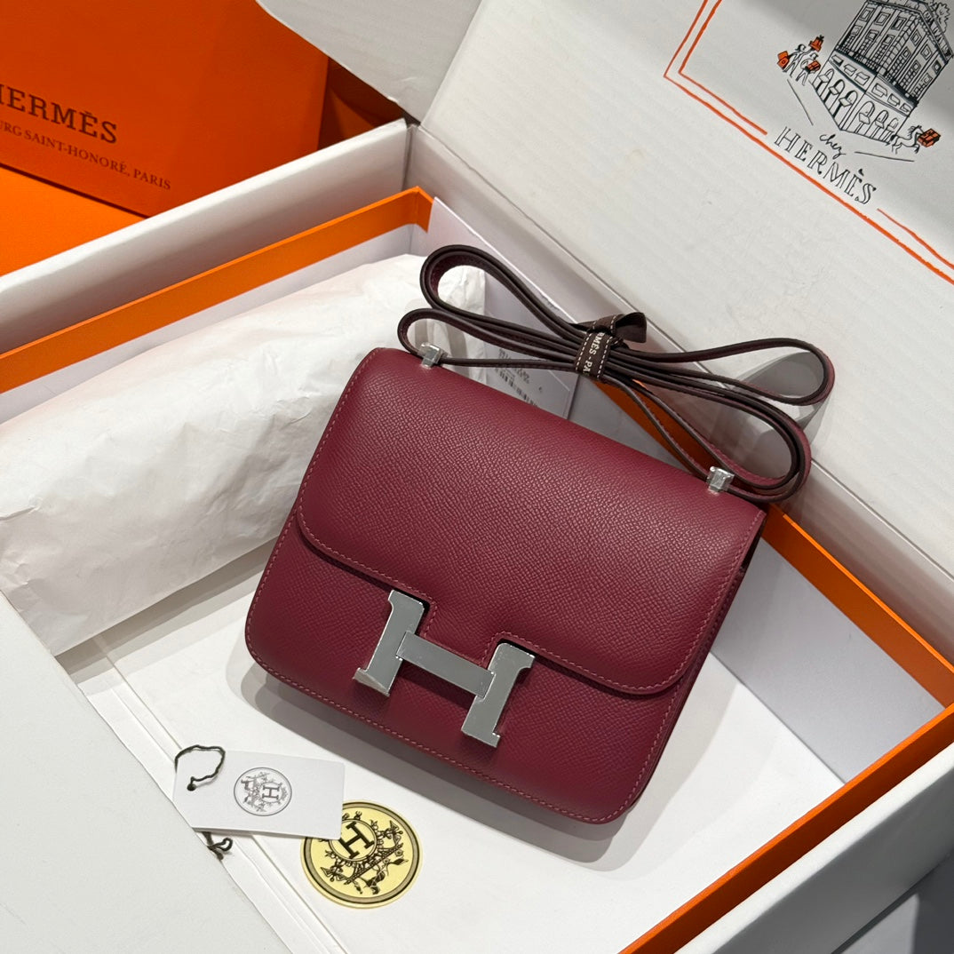 HM CONSTANCE 18 DARK RED EPSOM SILVER HARDWARE 243163