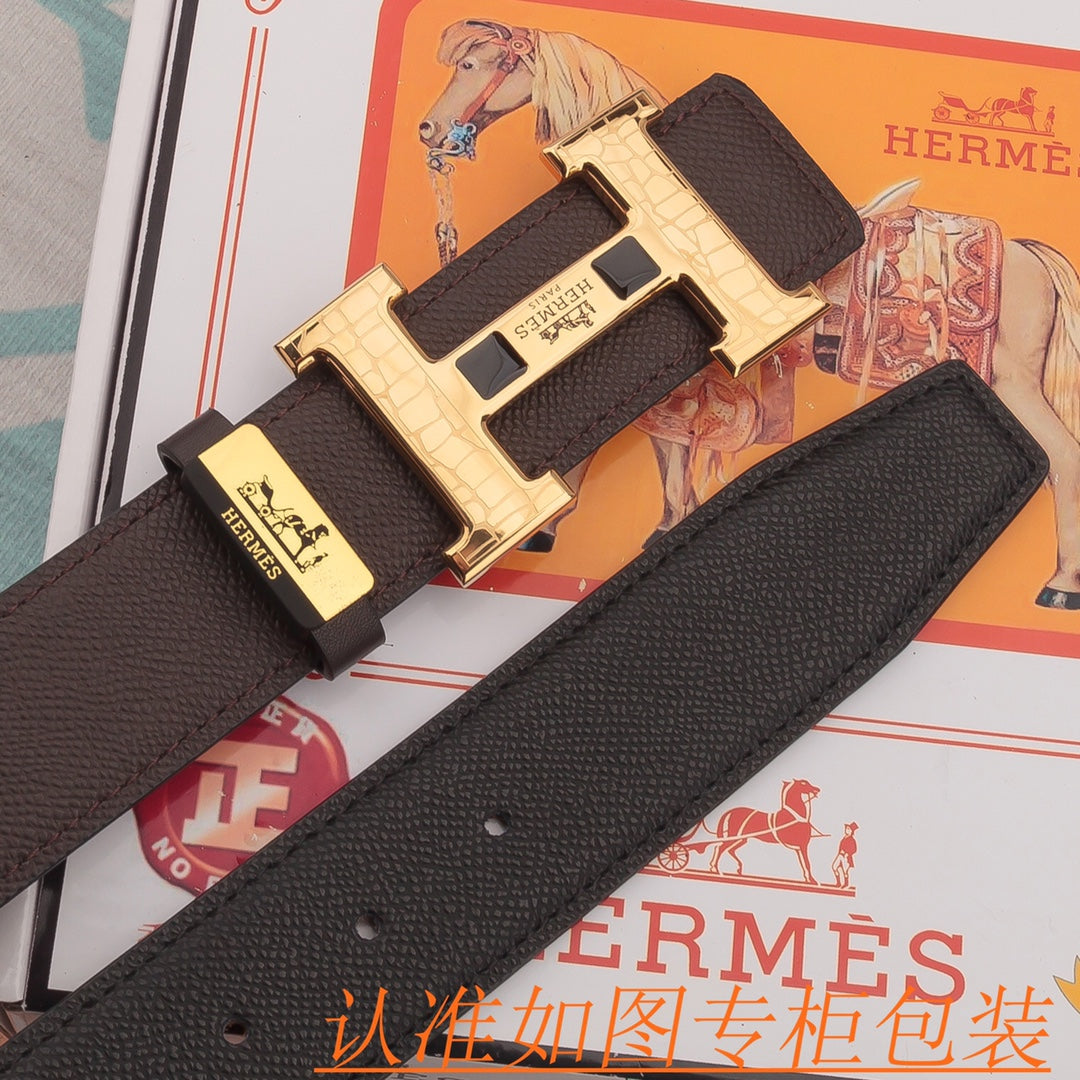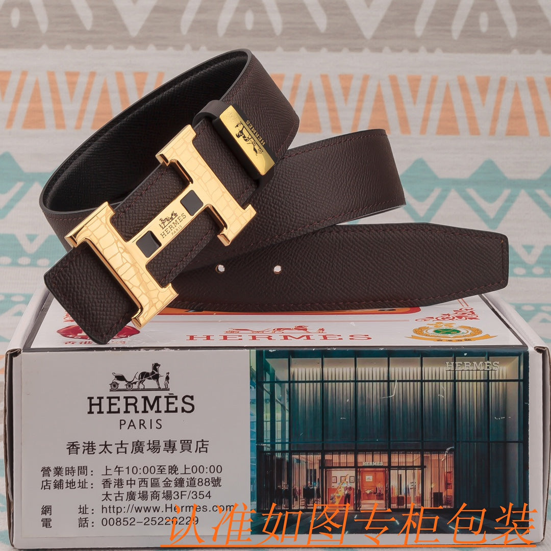 HM Constance Belt 38mm Brown Epsom Gold Buckle 619955
