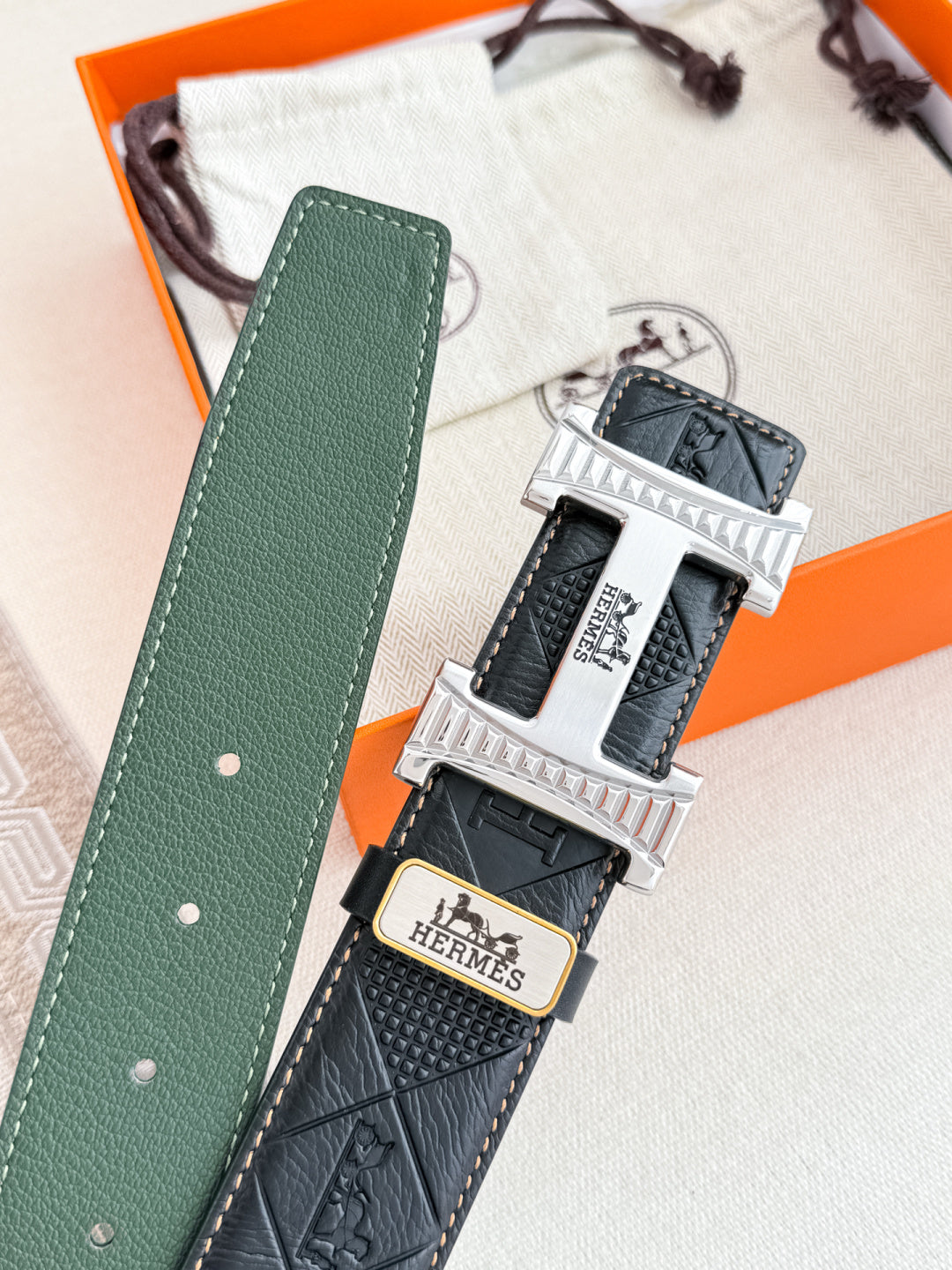 HM Constance Belt 38mm Black Green Cowhide Sliver Buckle 620241