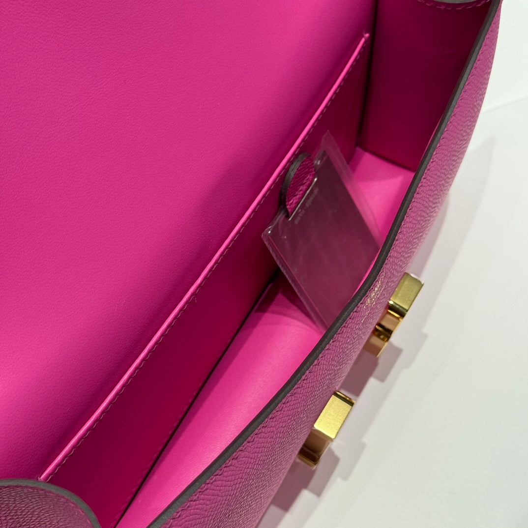HM Constance Elan 24cm Bag Rose Tyrien Epsom Leather Gold Hardware