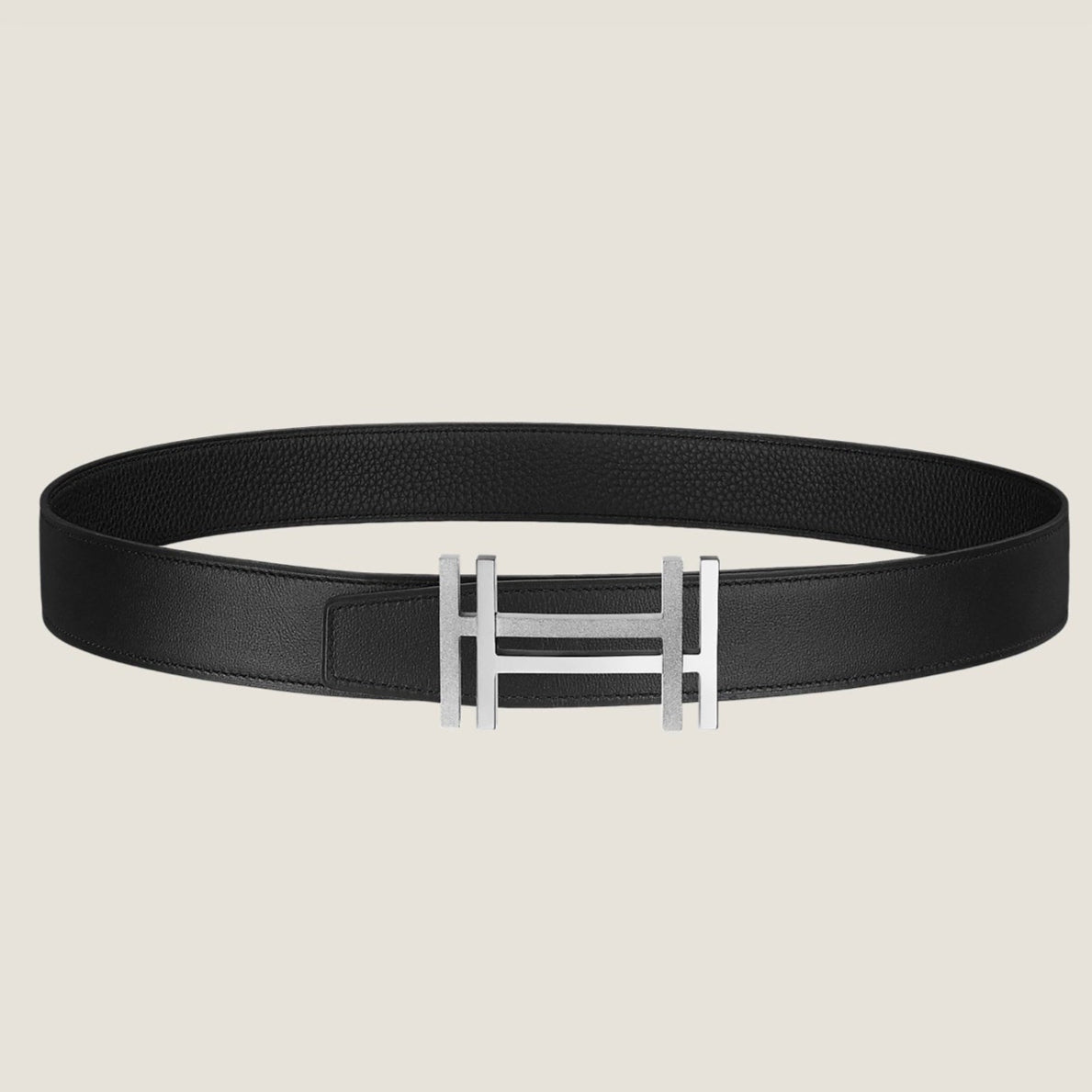 HM H au Carre Buckle Belt 32mm Black Leather 187768