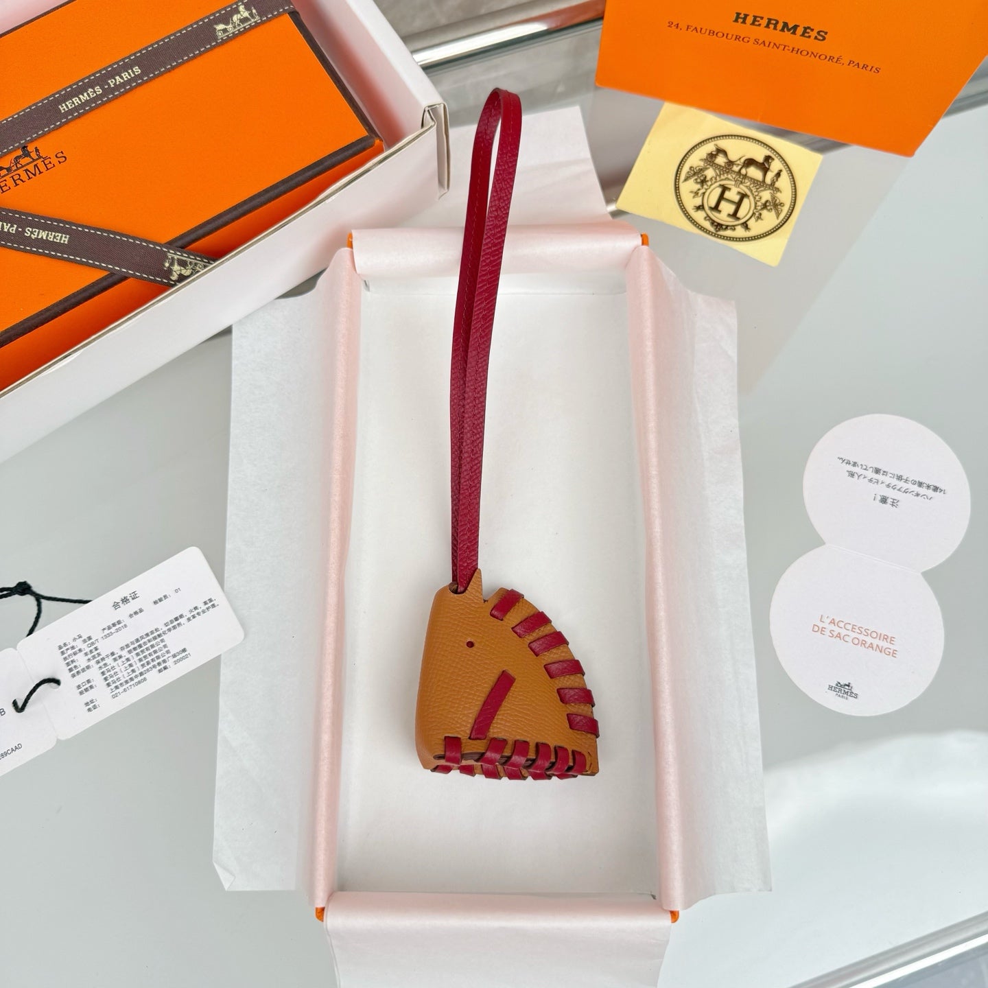 HM Horse Head Charm Brown Burgundy Calfskin
