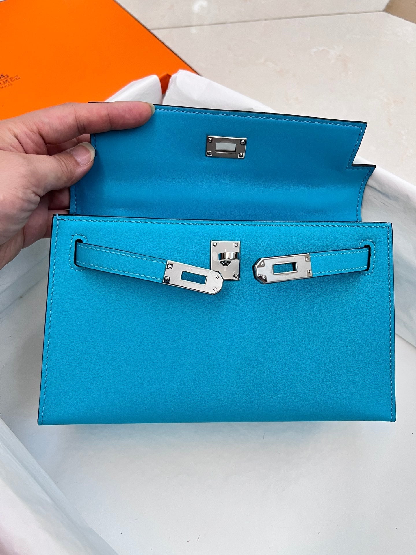 HM KELLY POCHETTE 22CM CERULEAN SWIFT SILVER HARDWARE