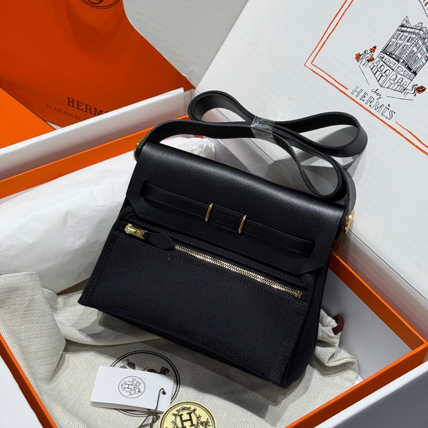 HM Mini Herbag Gold Buckle 20 Black Canvas and Hunter Cowhide 243310