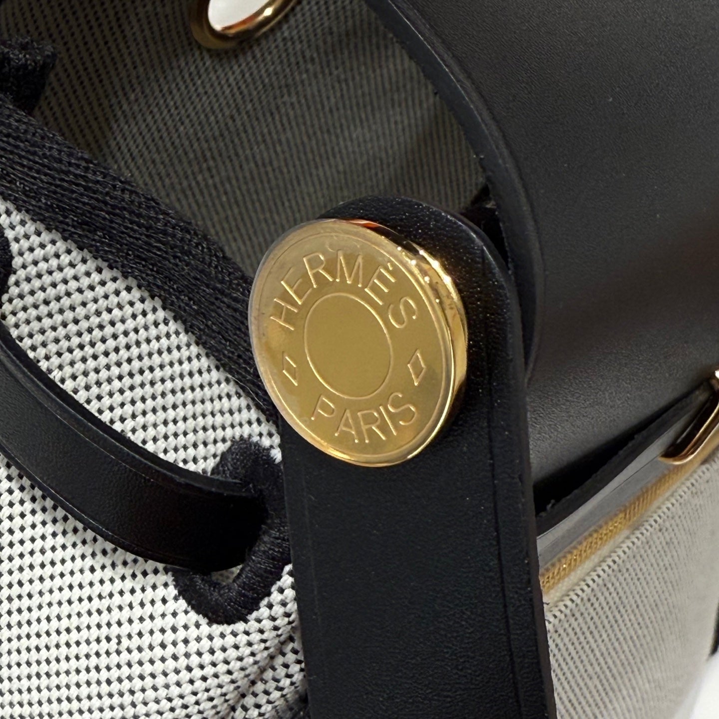 HM Mini Herbag Gold Buckle 20 Ecru White Canvas and Hunter Cowhide 243226