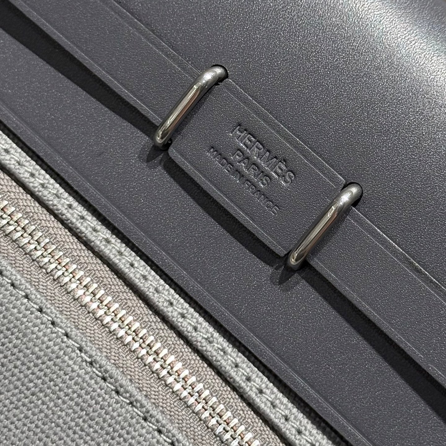 HM Mini Herbag Silver Buckle 20 Gray Canvas and Hunter Cowhide 243265