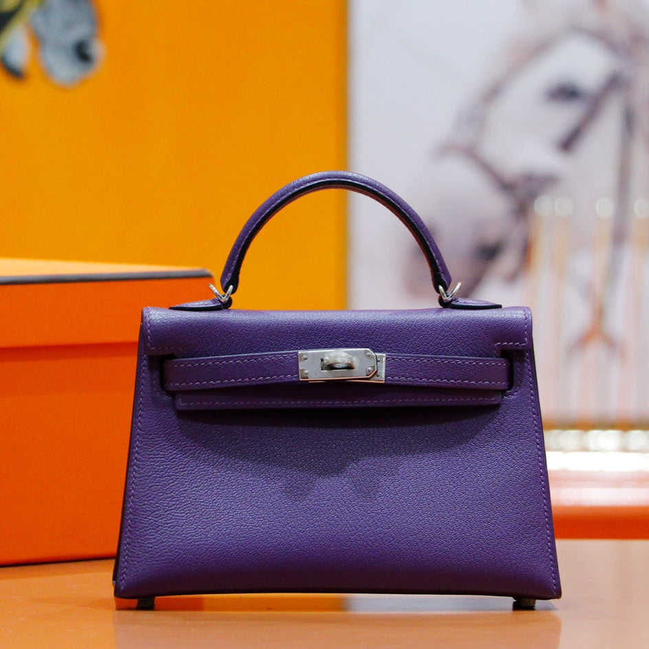 HM Mini Kelly 19cm Purple Epsom Gold Hardware