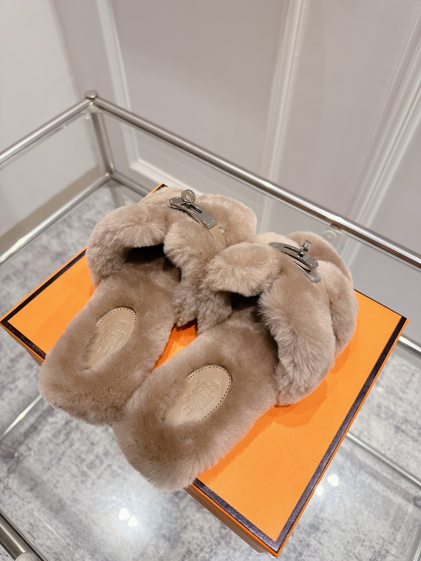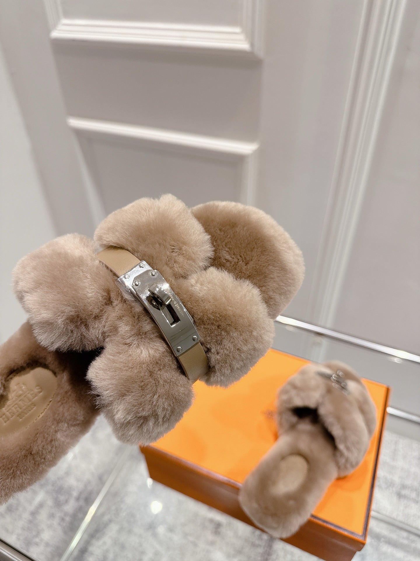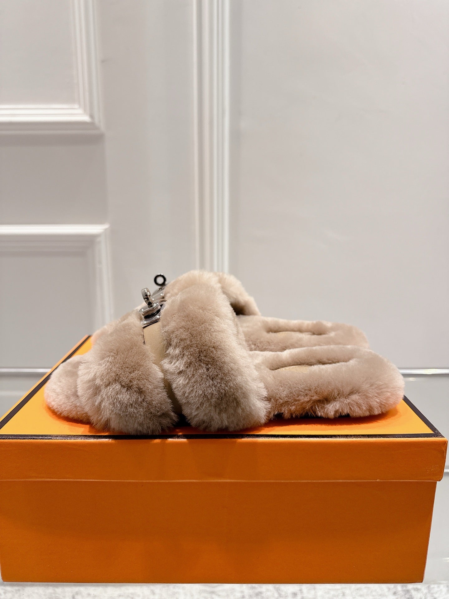 HM Oran slippers sliver buckle nude wool