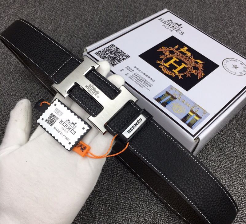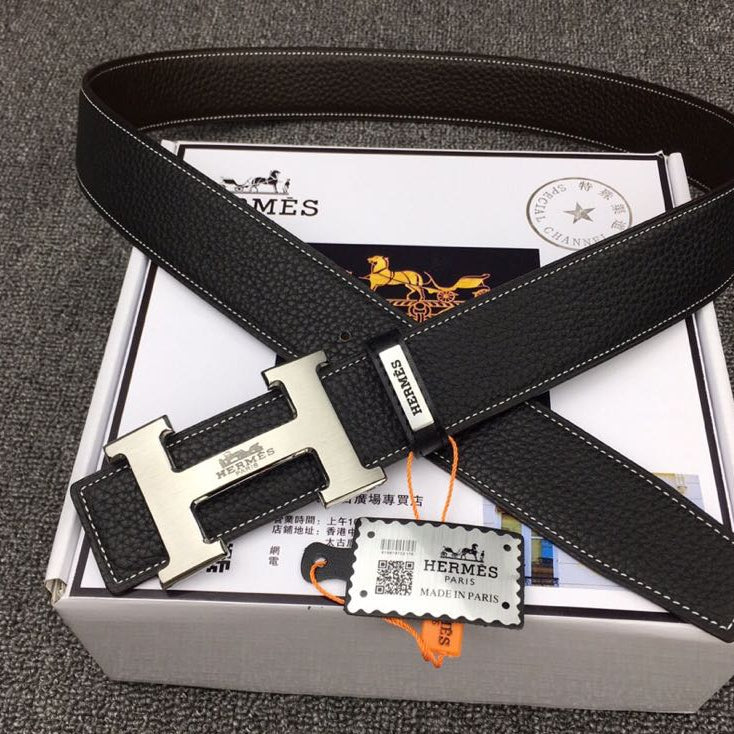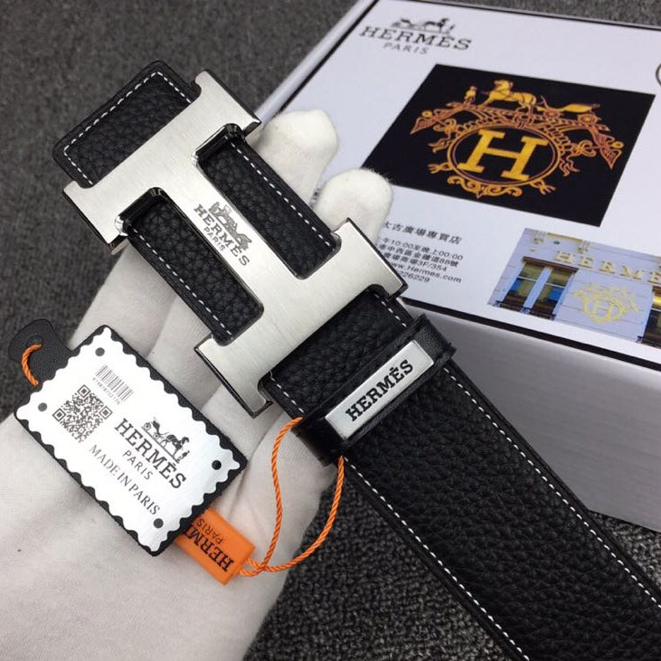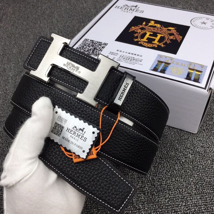 HM Original Belt 38mm Black Cowhide Sliver Buckle 620254