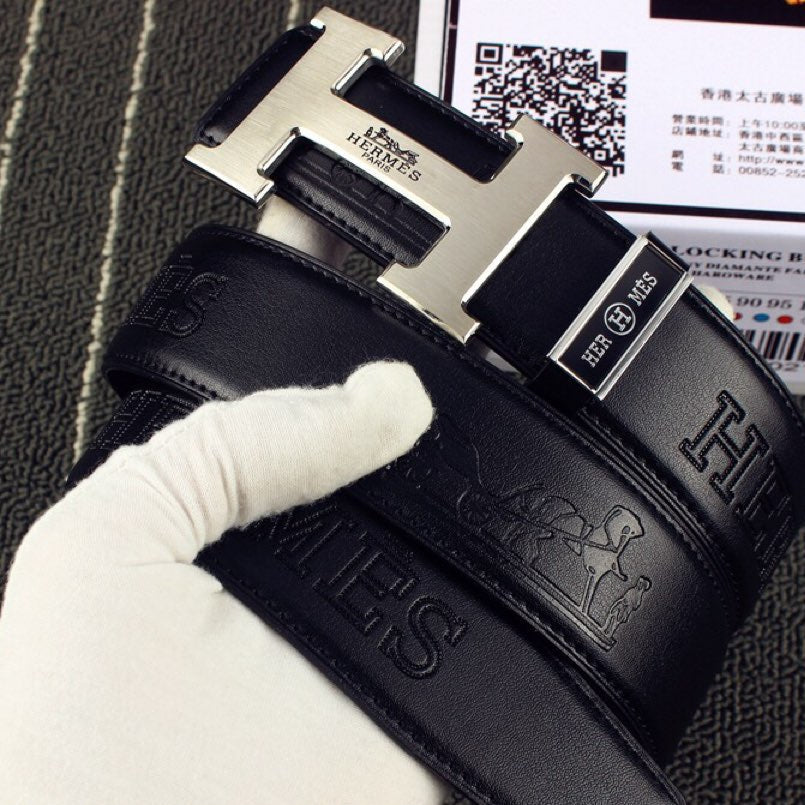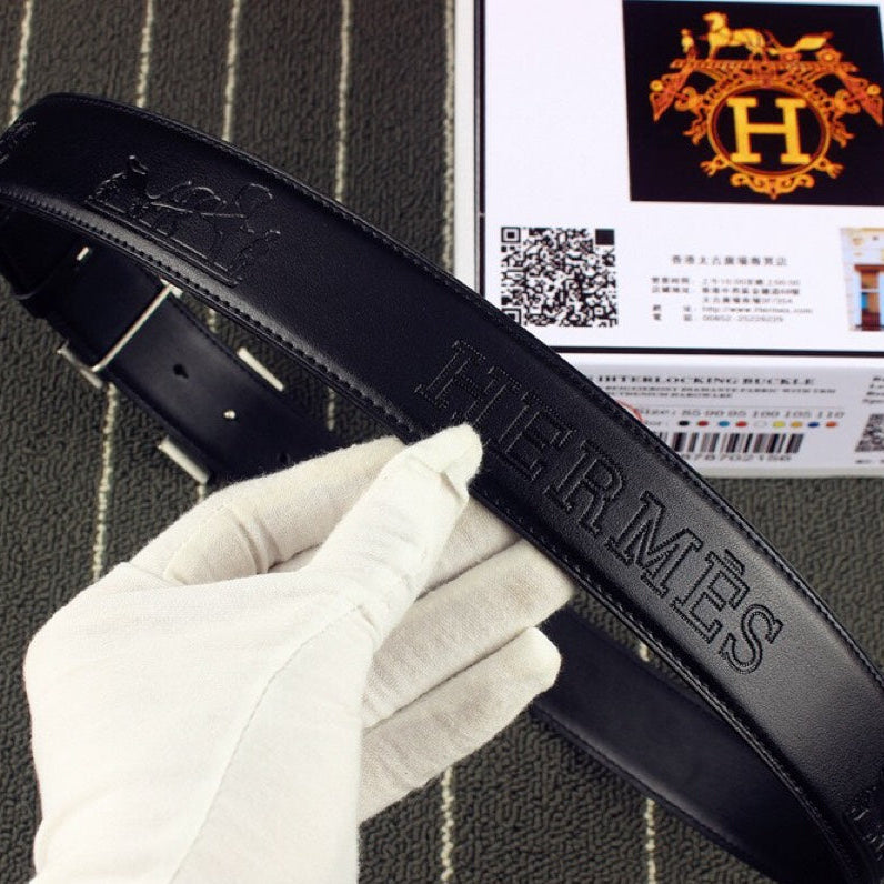 HM Original Belt 38mm Black Cowhide Sliver Buckle 620272