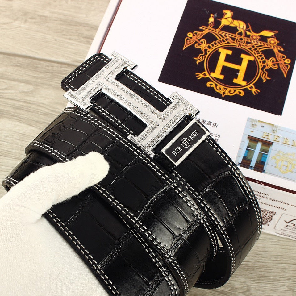 HM Original Belt 38mm Black Crocodile Pattern Sliver Buckle 620265