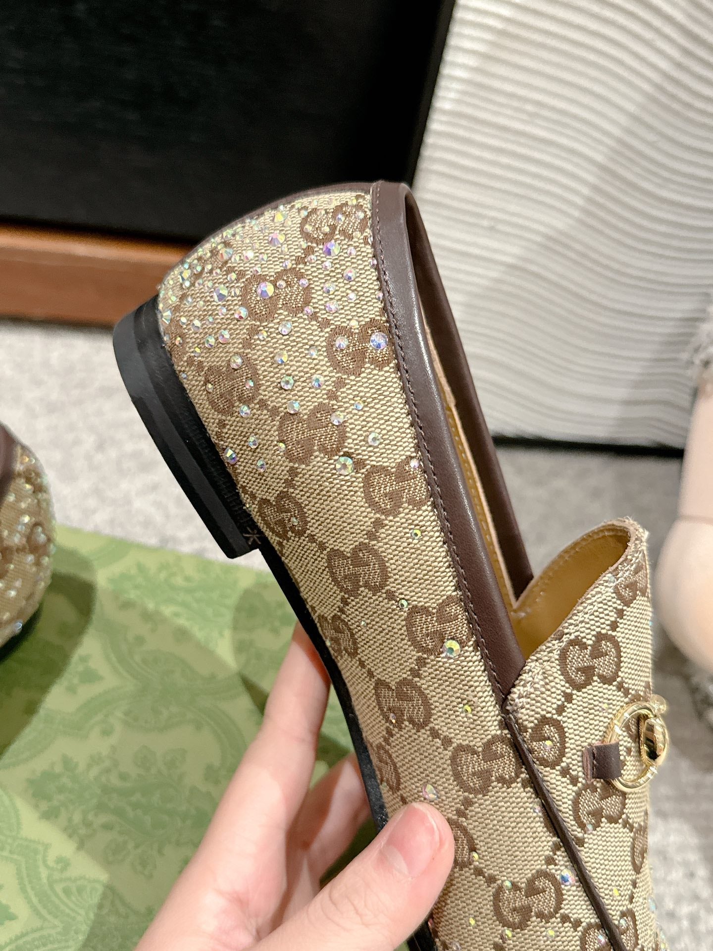 Horsebit Jordaan Loafer Beige Ebony Canvas Crystal-Embellished