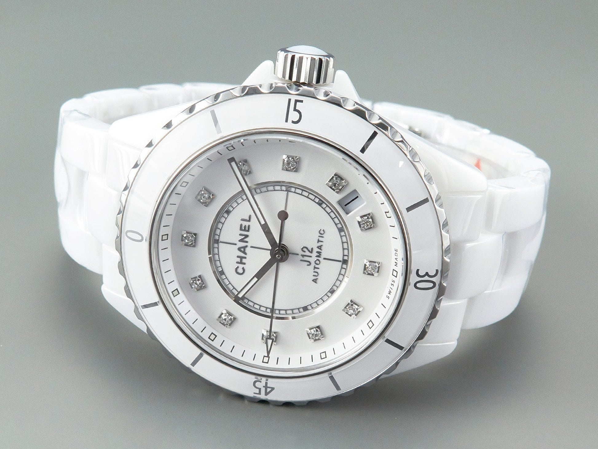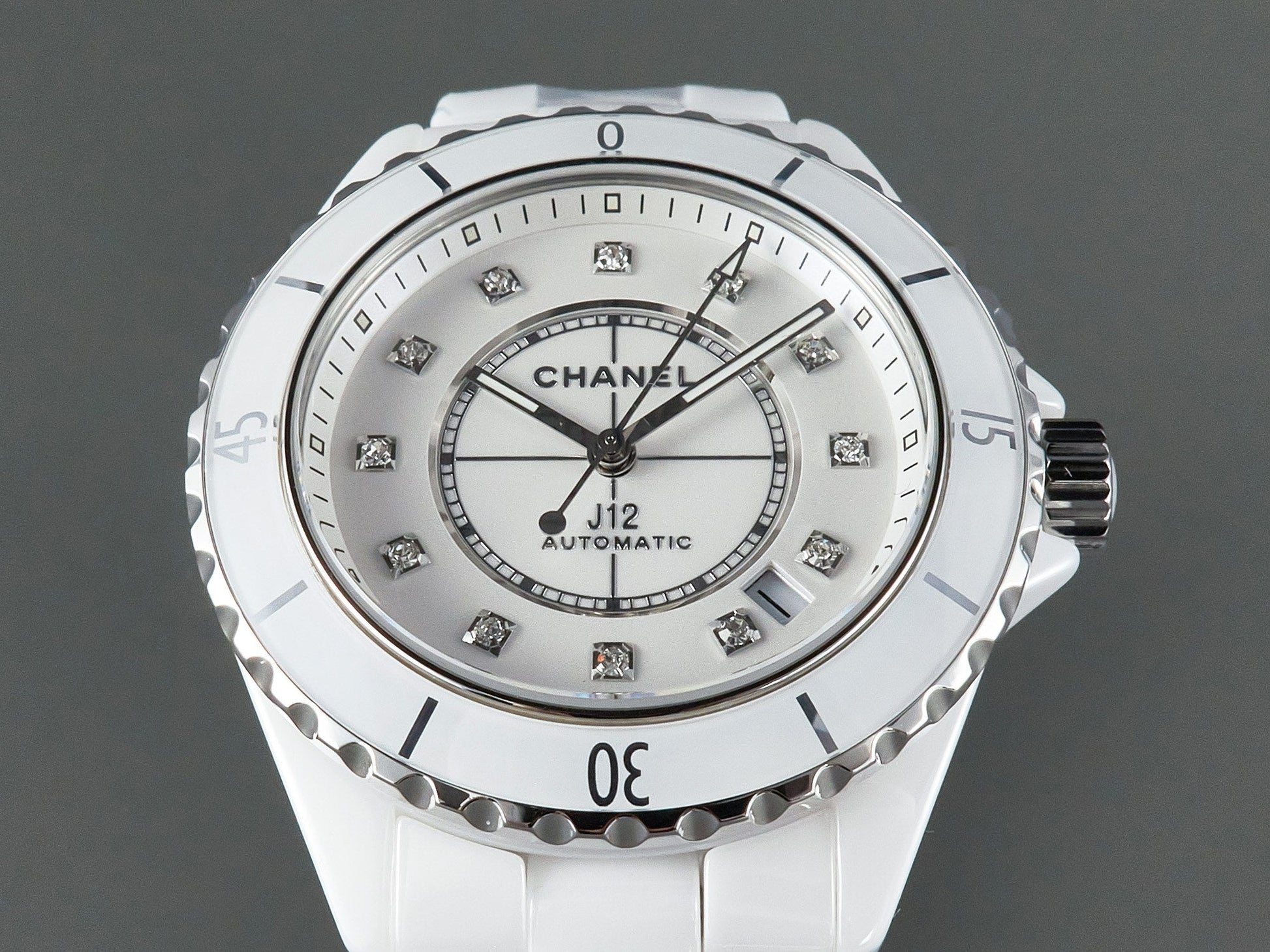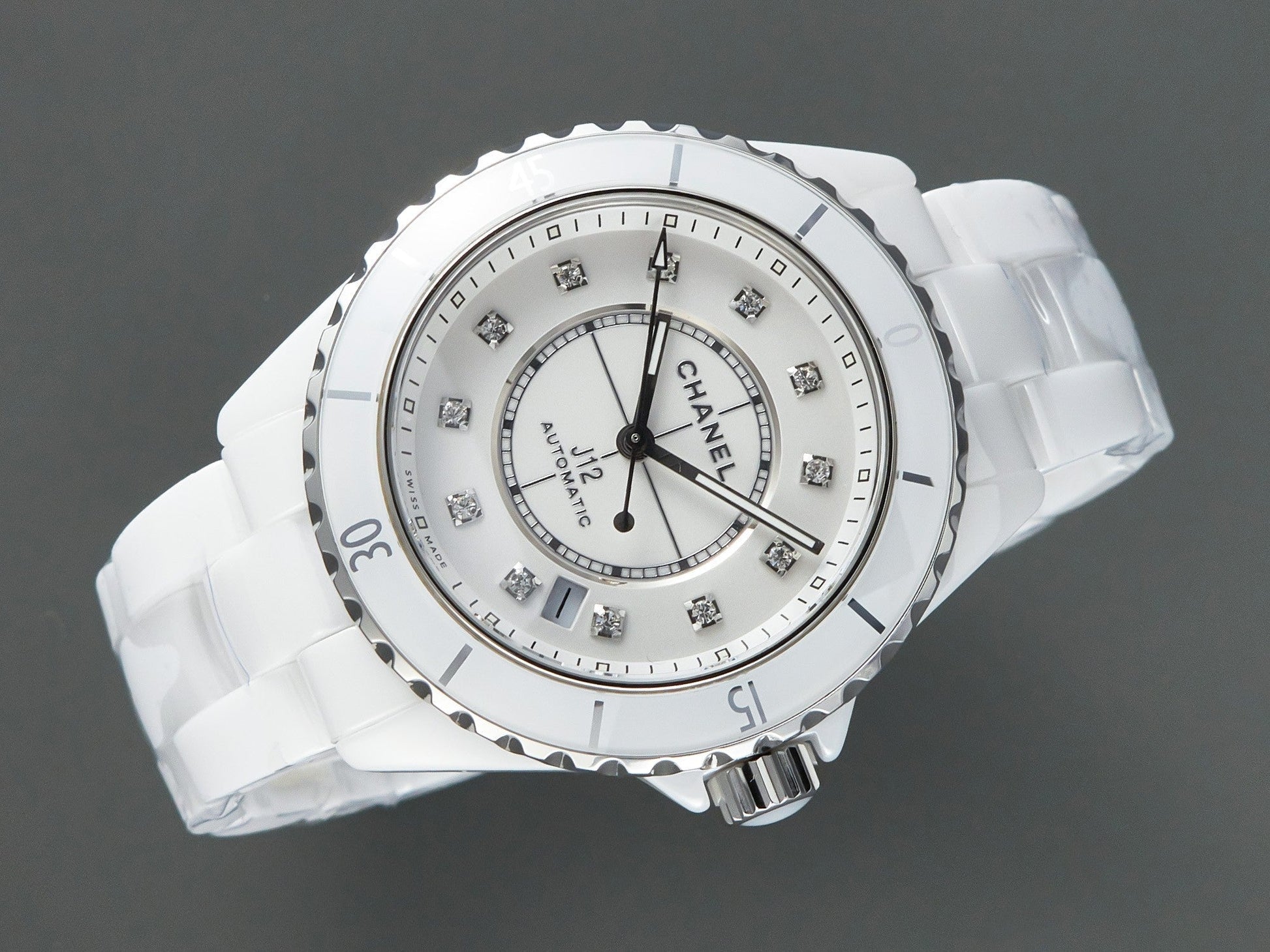 J12 Automatic White Ceramic Diamond Numerals White Dial