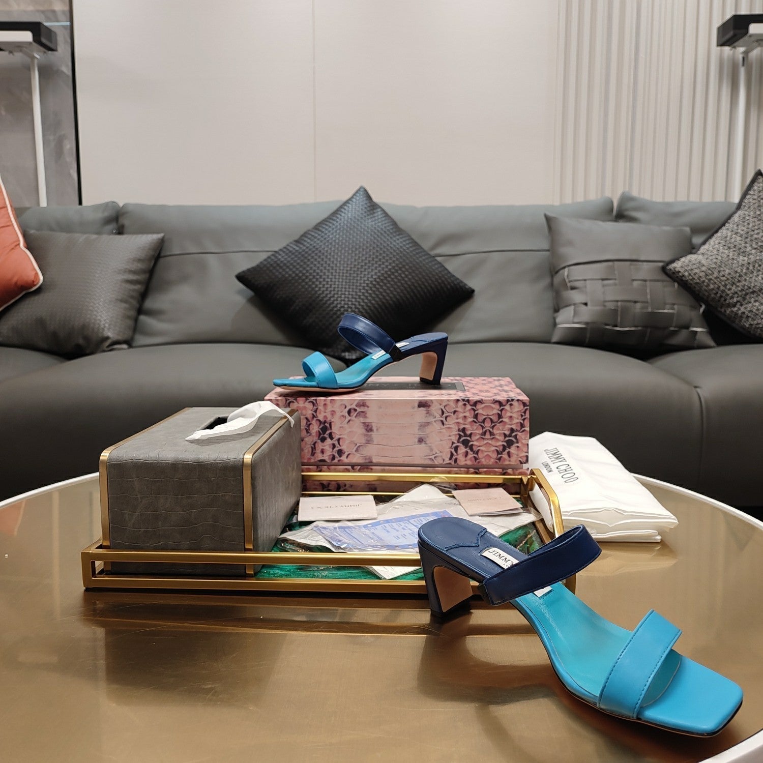 Jimmy 25 Kyda Nappa Sandals 55MM Ncs Blue Leather 240107