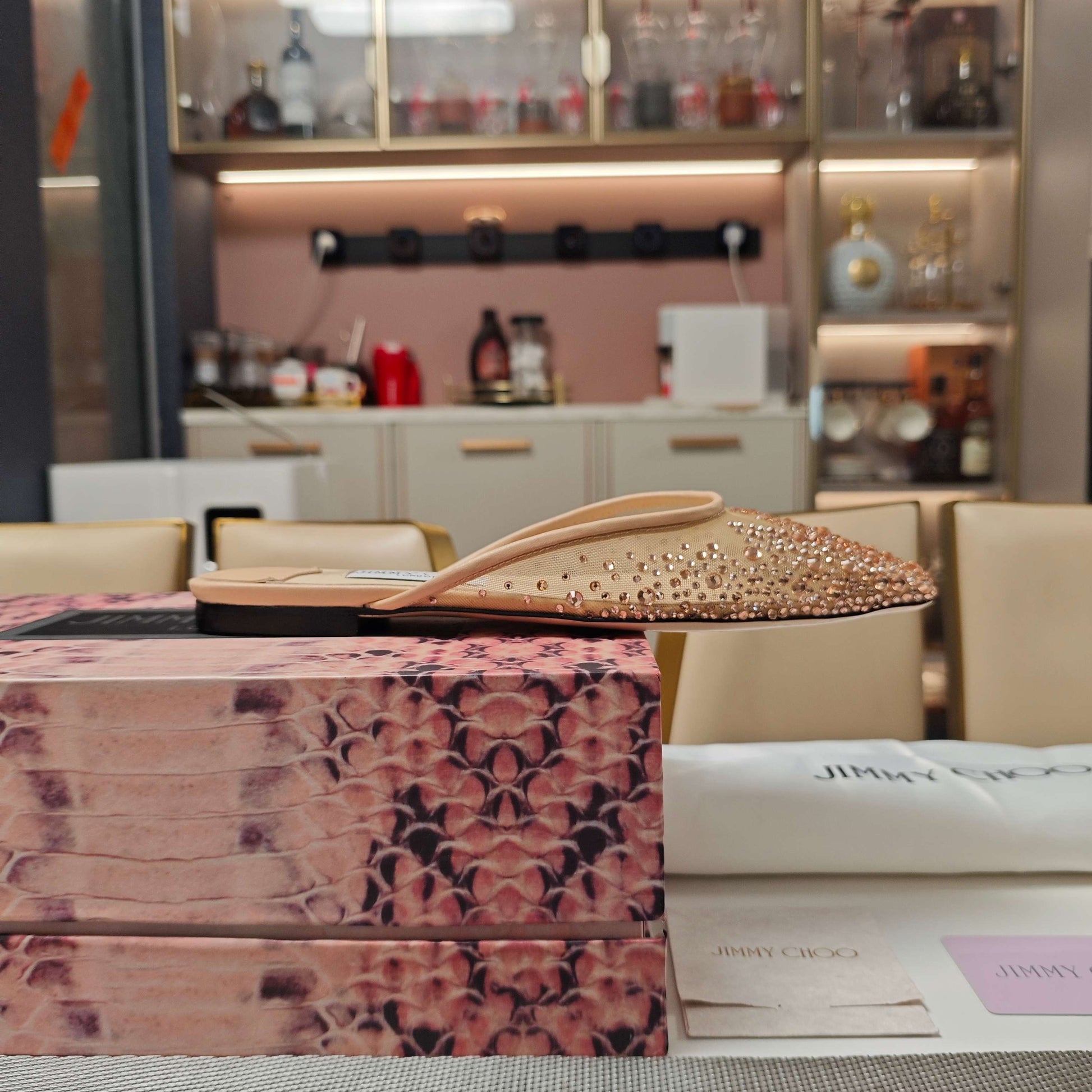 Jimmy 25 Mule Flats Cream Mesh Gauze 240058