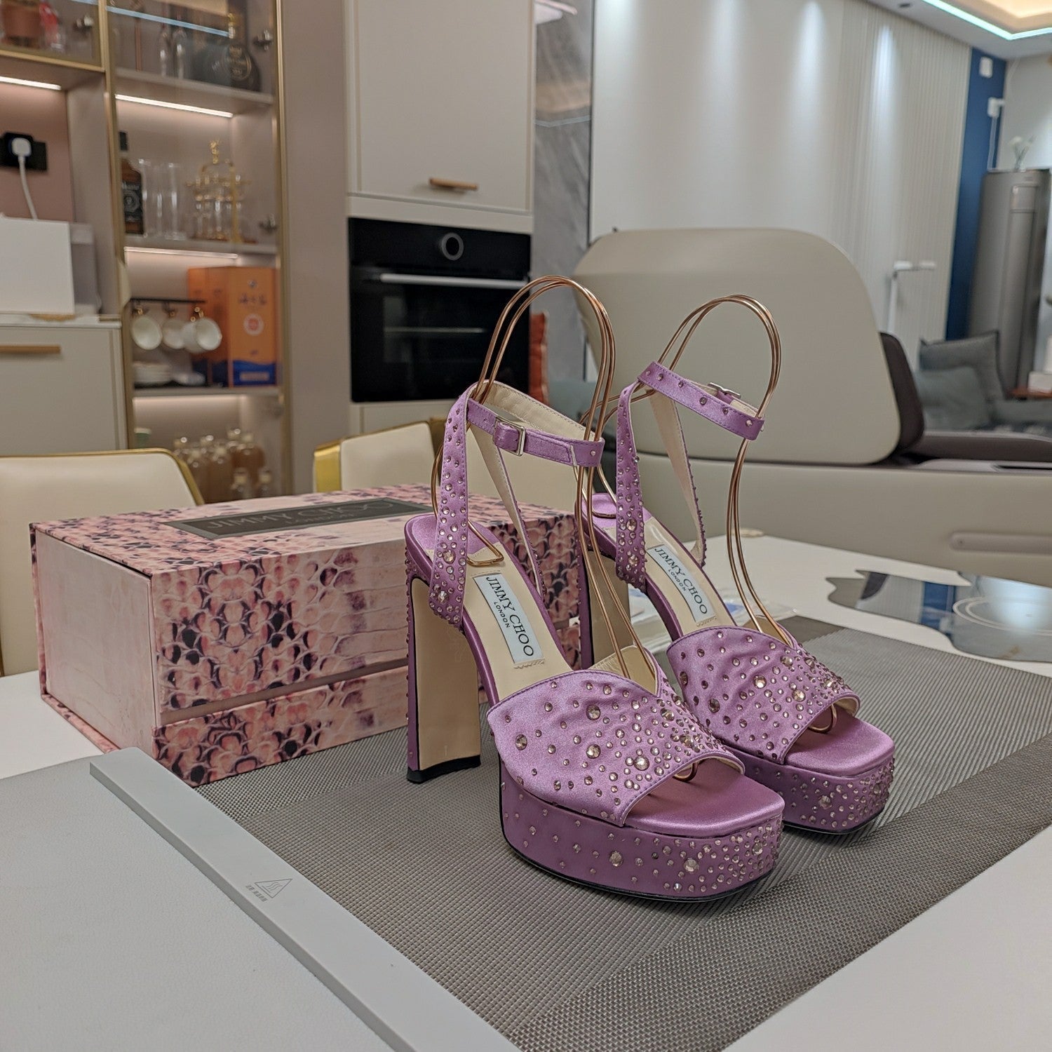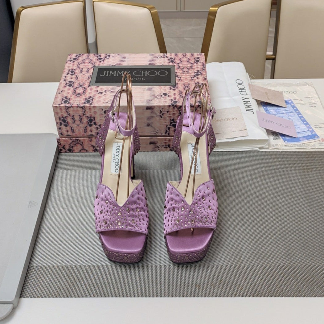 Jimmy 25 Platform Sandal Heels Lilac Purple Silk Satin 240011