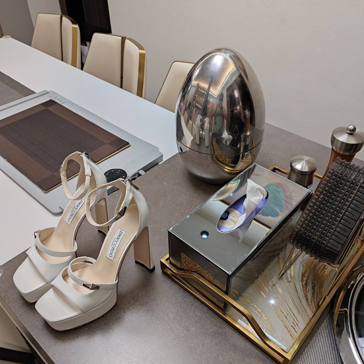 Jimmy 25 Platform Sandal Heels White Nappa Cowhide 240007