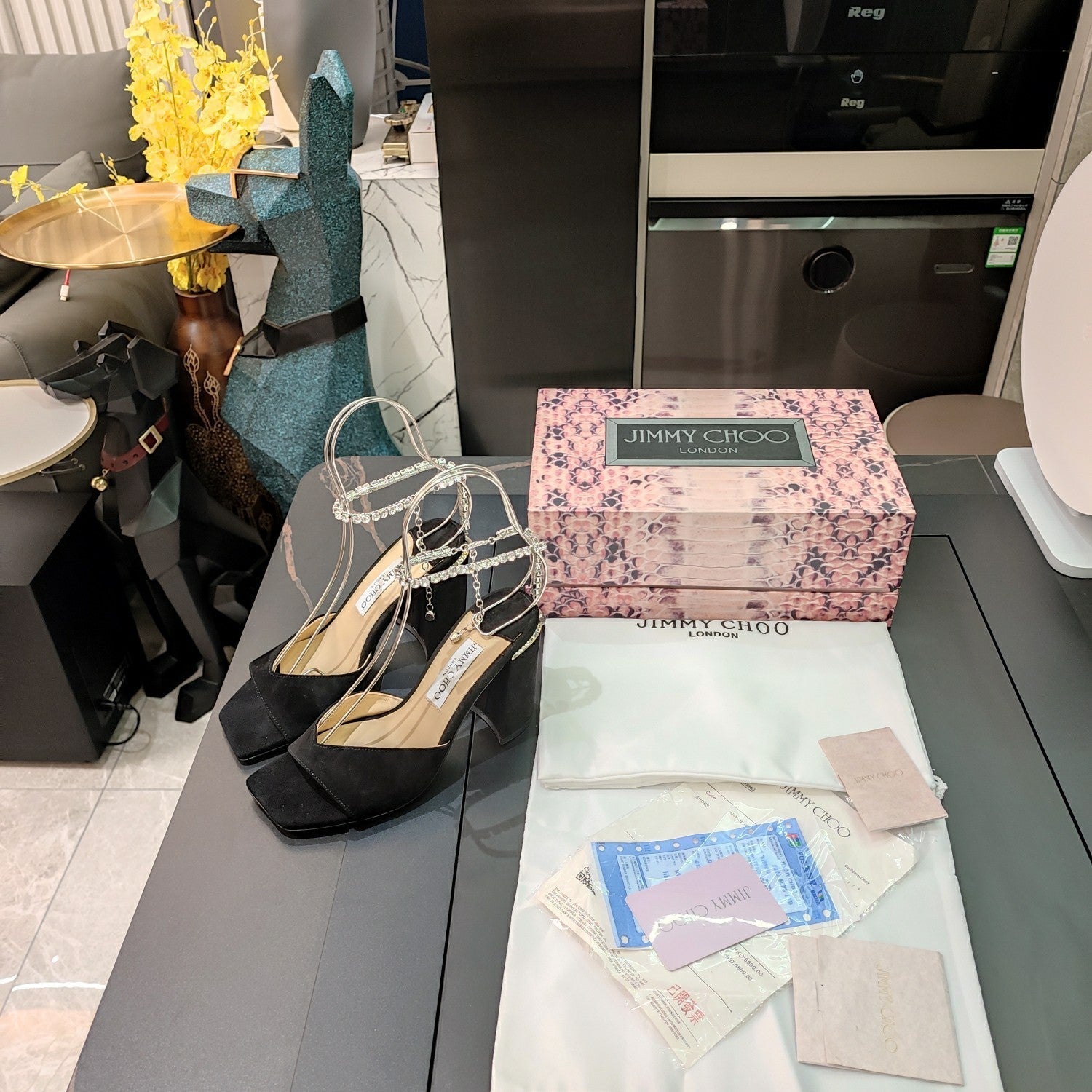 Jimmy 25 Saeda 85mm Sandals Black Suede 240083