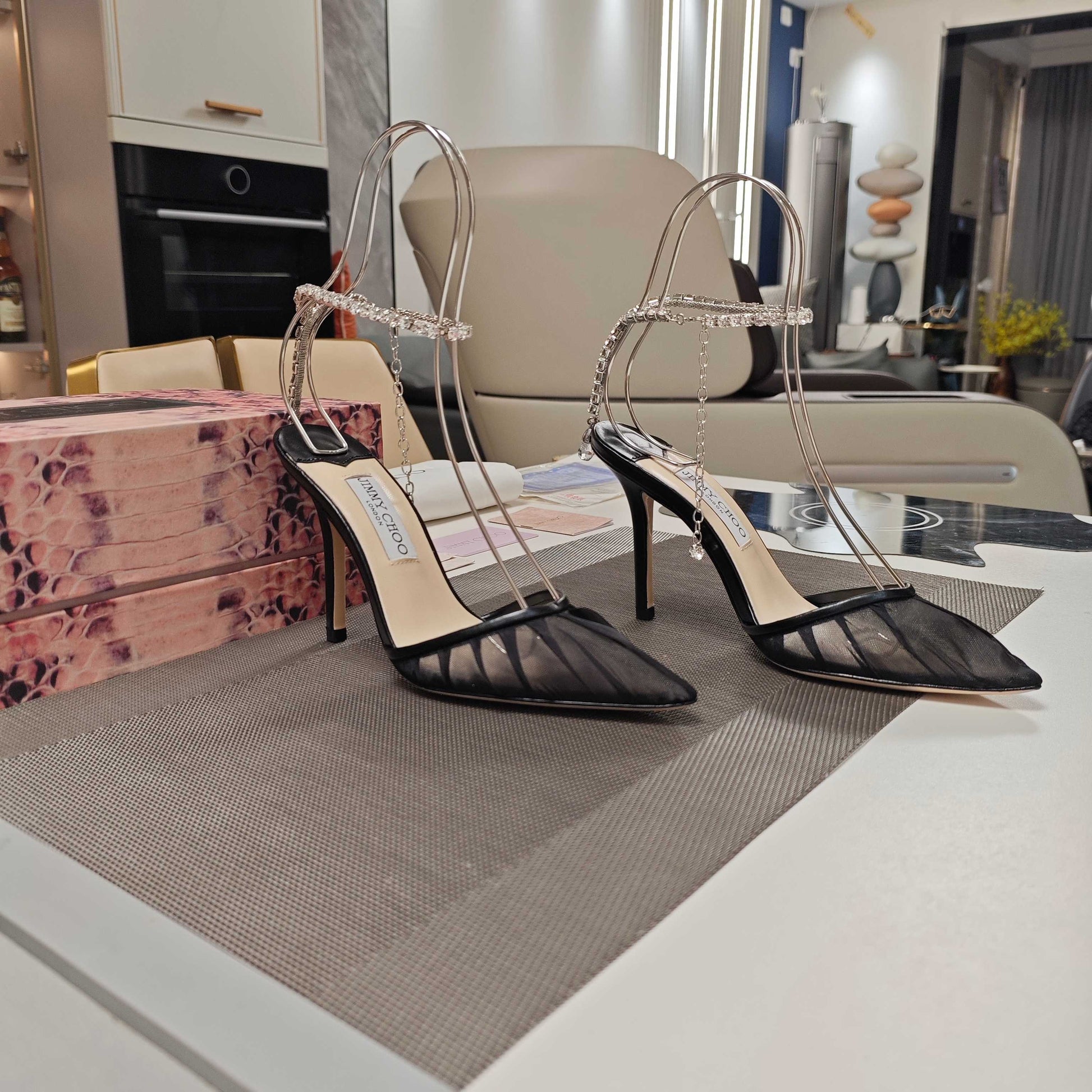 - Material: Transparent tulle with Cowhide