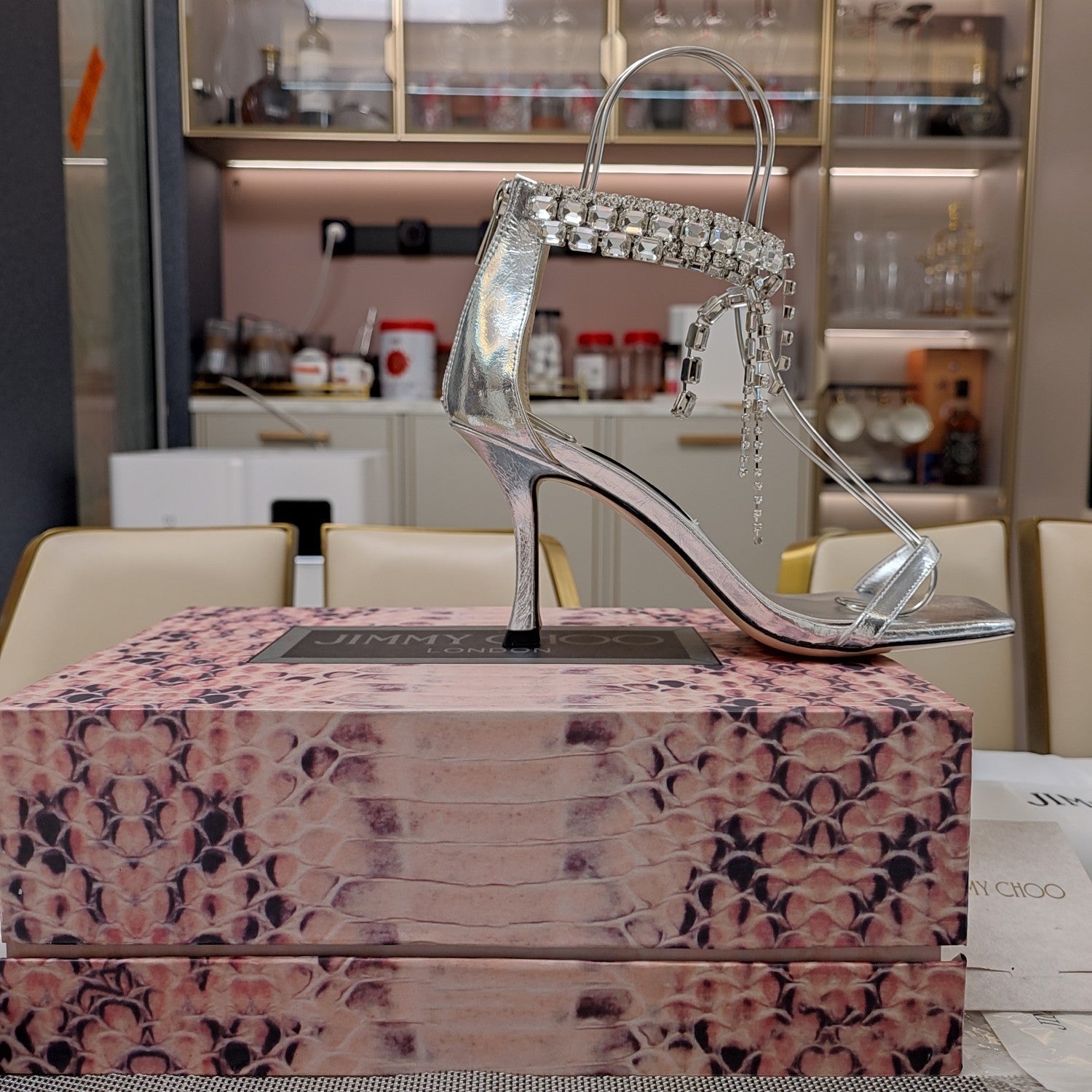 Jimmy 25 Verity Sandal 70 Silver Cracked Cowhide 240033