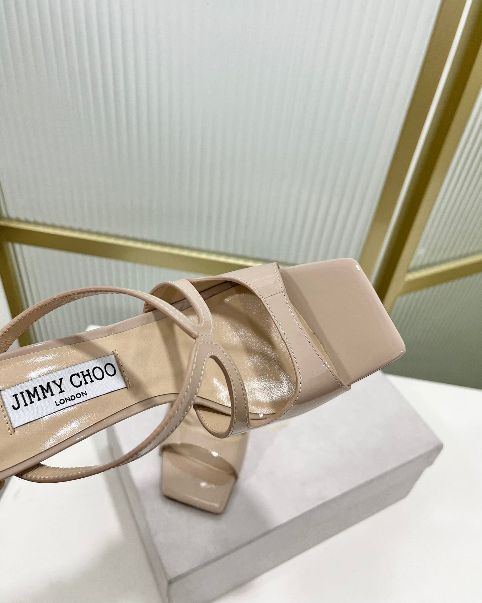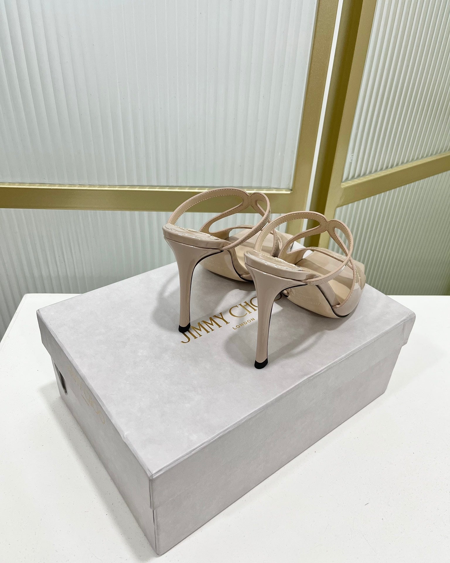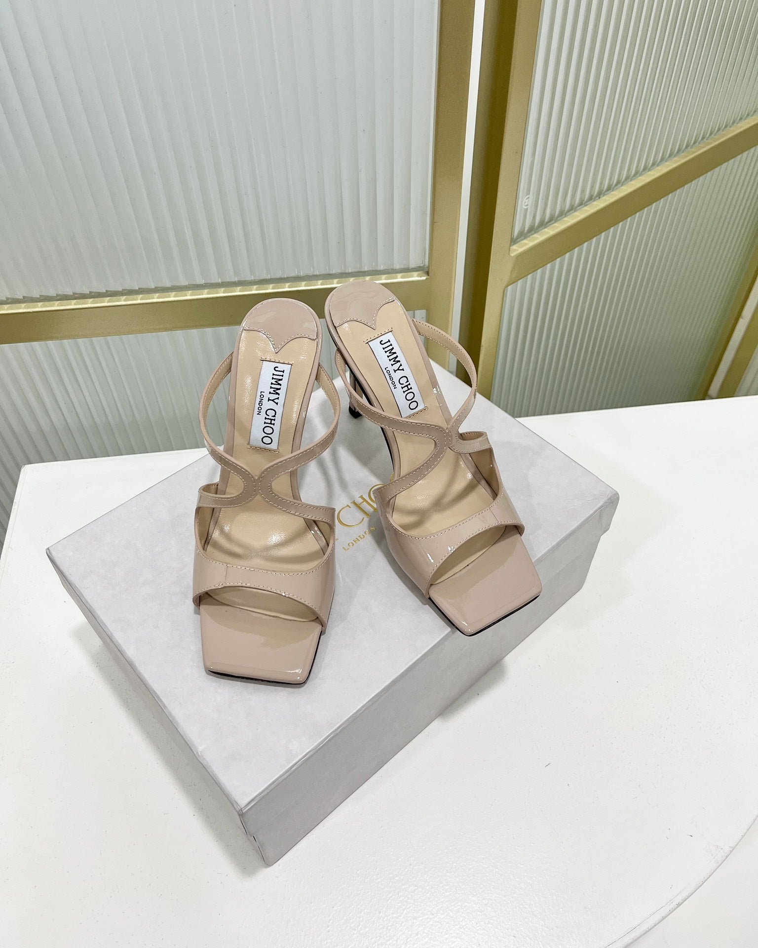 Jimmy Anise 85 In Light Pink Beige Glossy Cowhide Mules 587690
