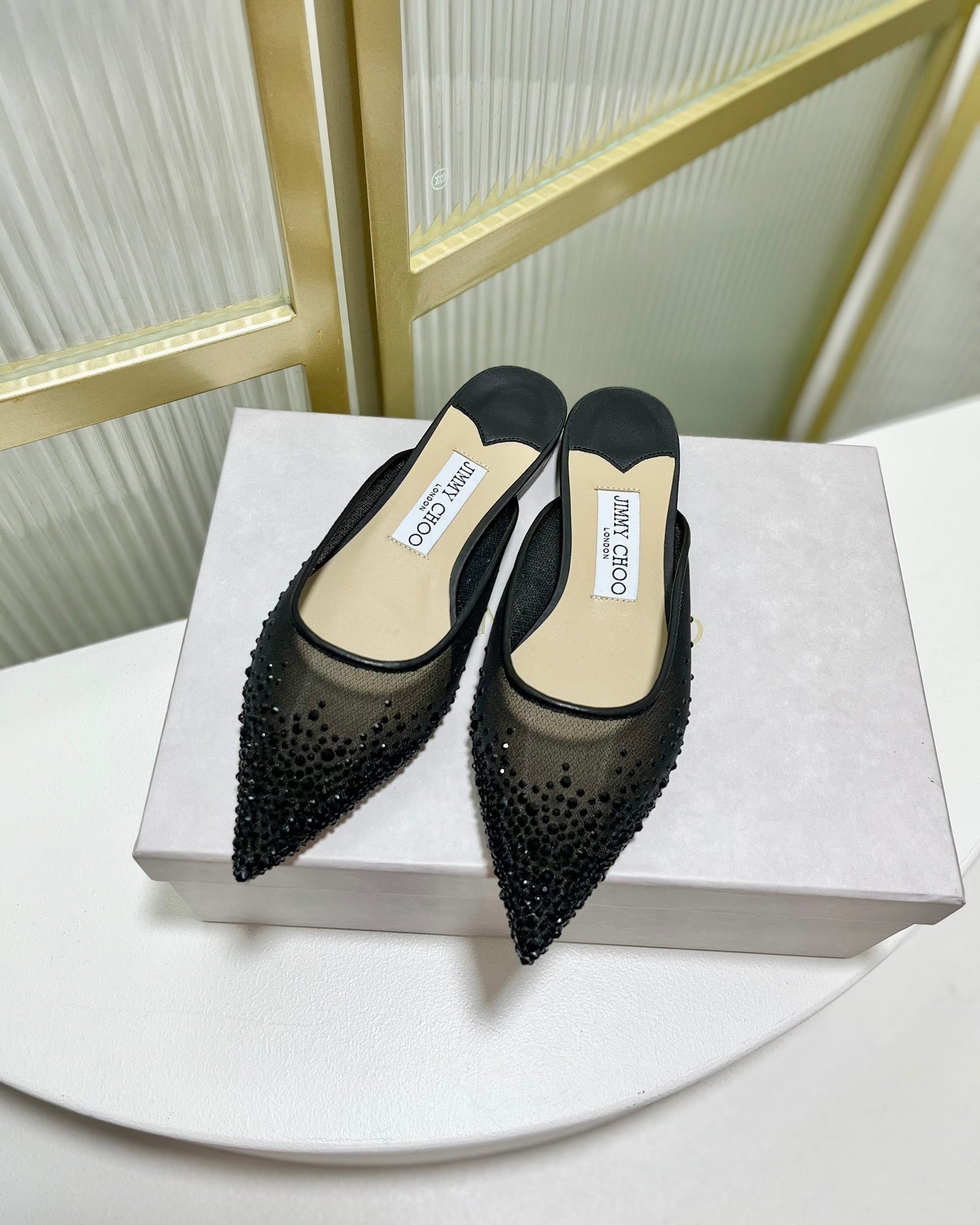 Jimmy Mule In Black Mesh Fabric With Swarovski Crystal 597874