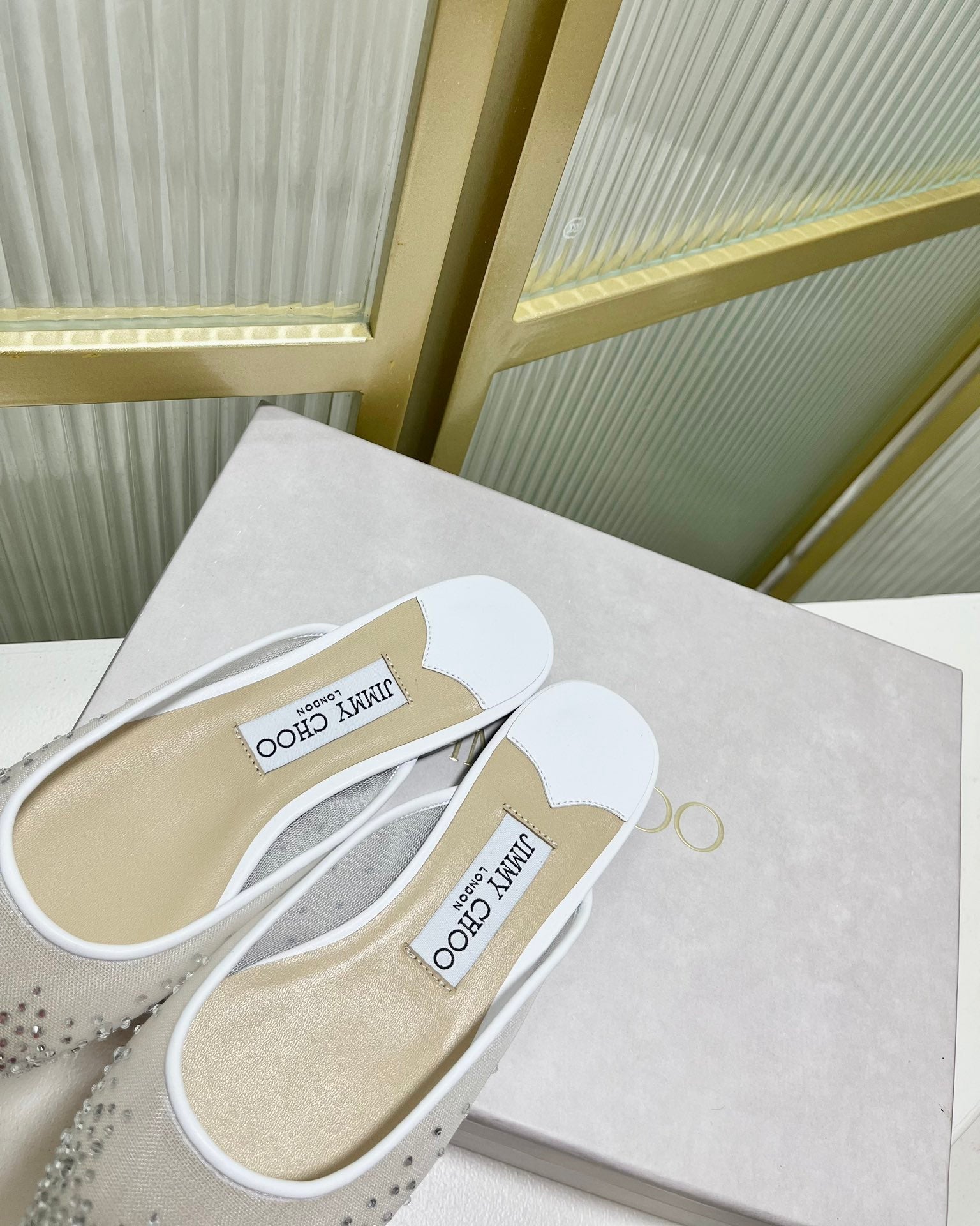 Jimmy Mule In White Mesh Fabric With Swarovski Crystal 597884