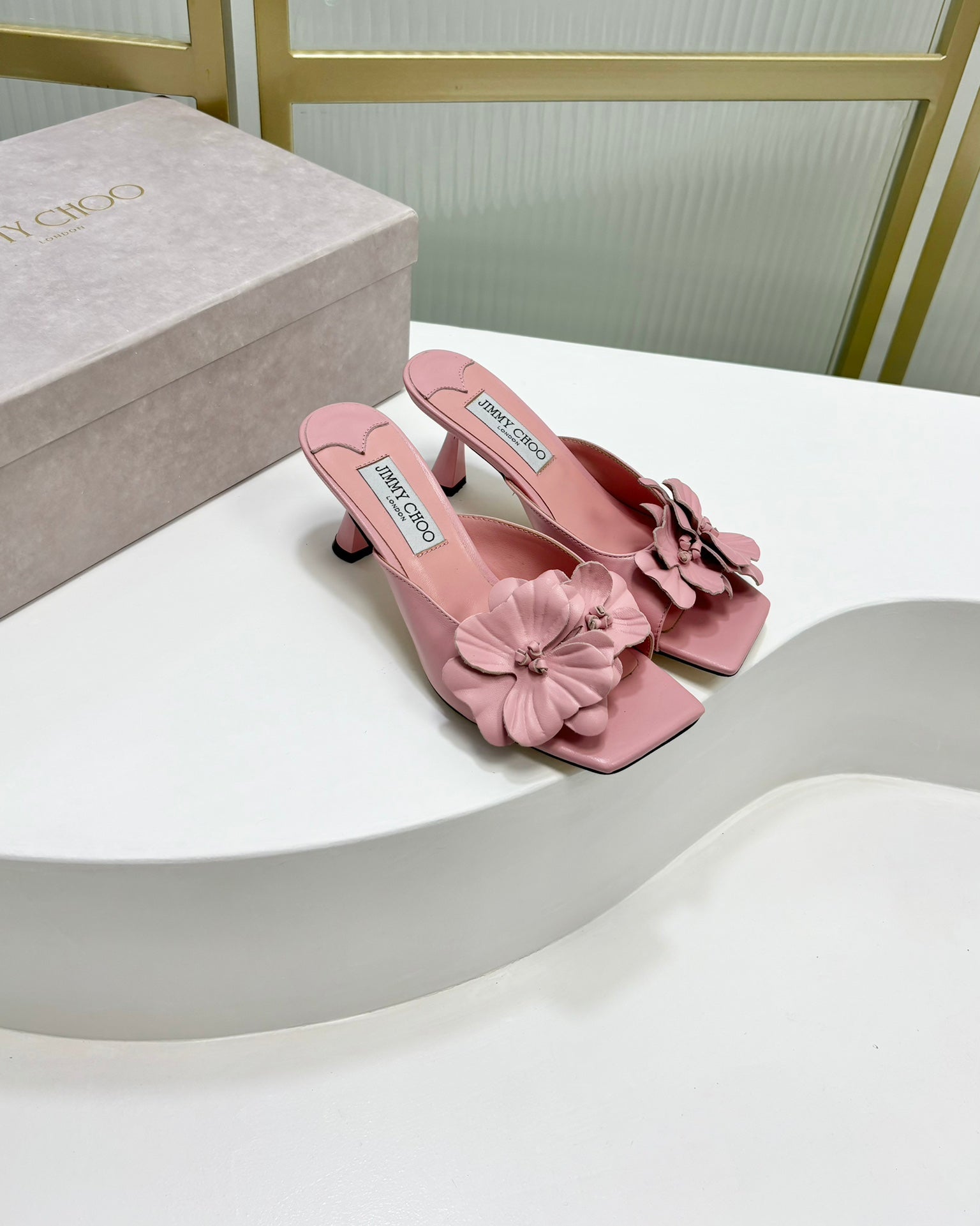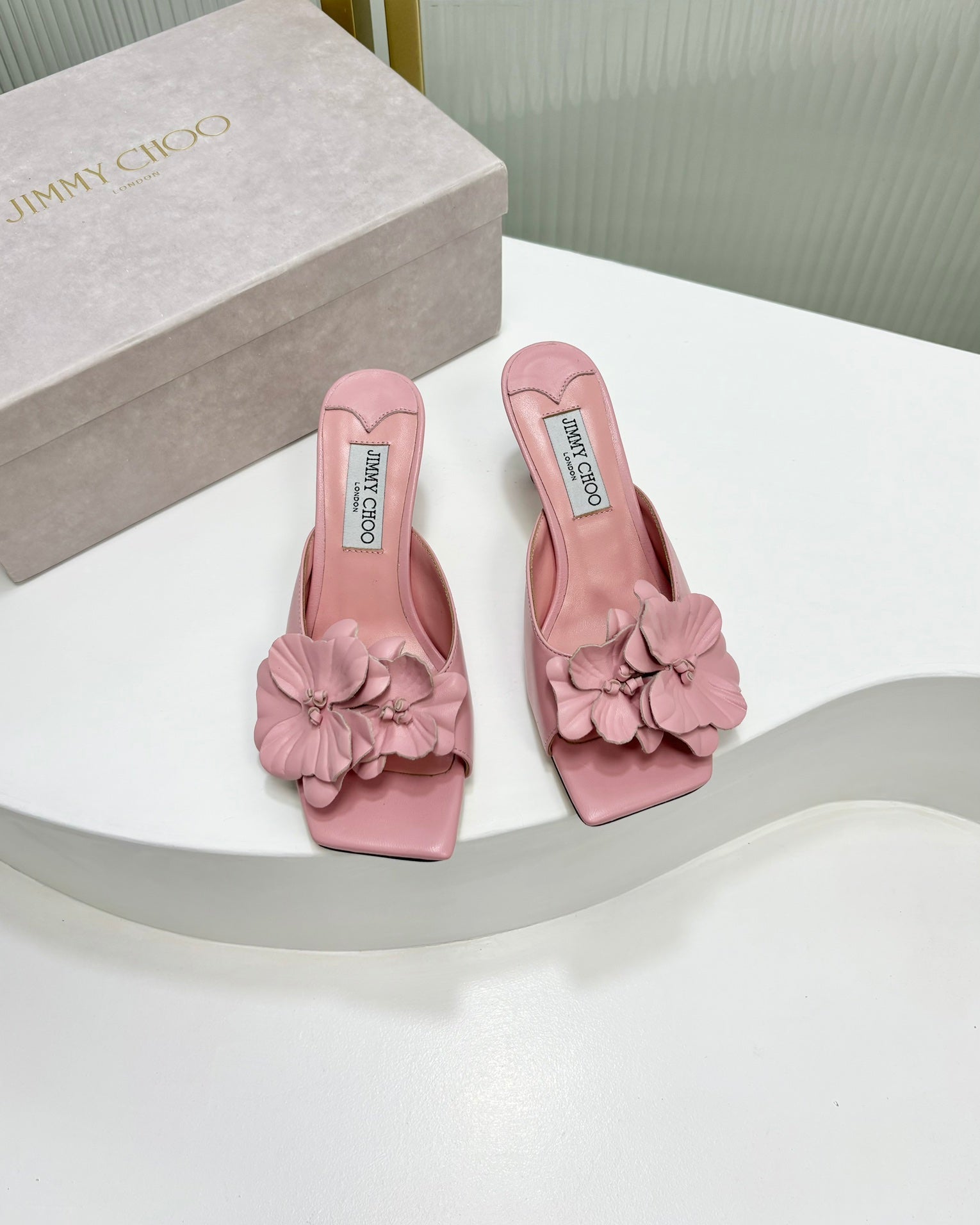 Jimmy Skye 65mm In Pastel Pink Cowhide Mules 597848