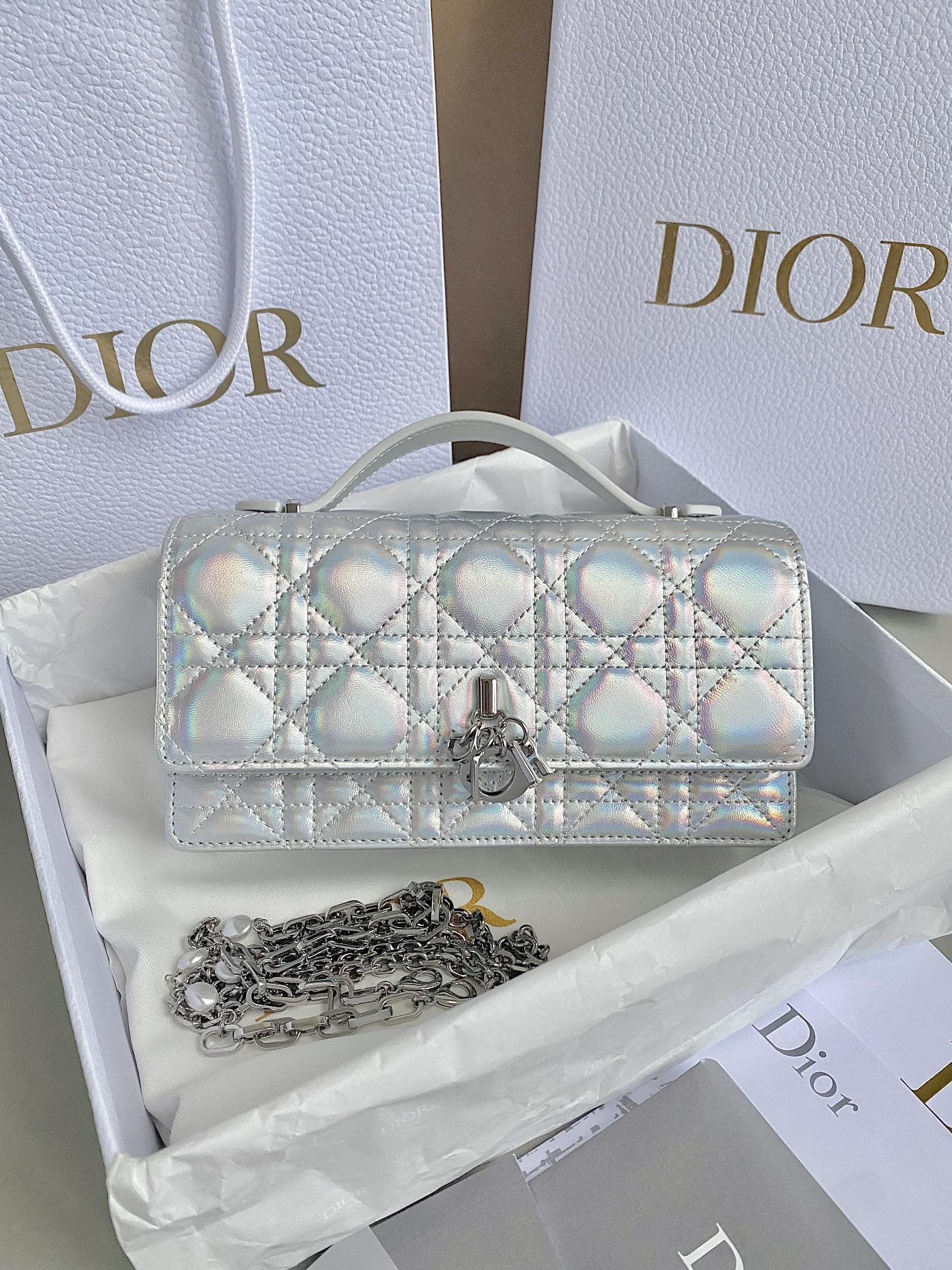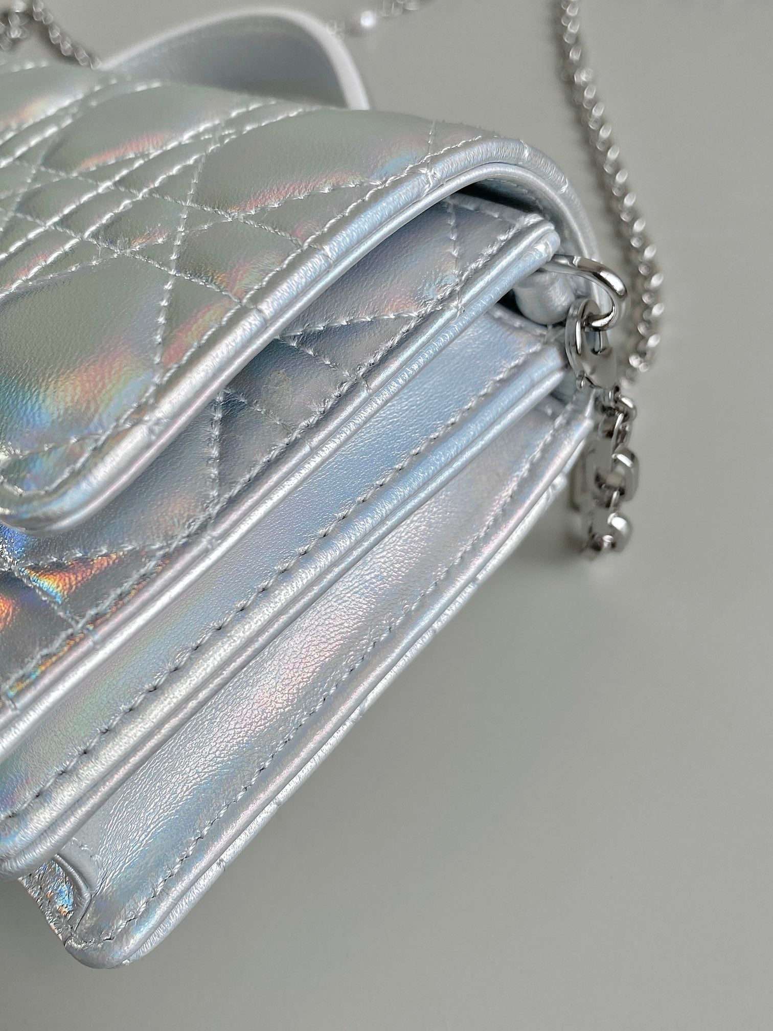 LADY 21 CHAIN BAG IN SILVER LAMBSKIN