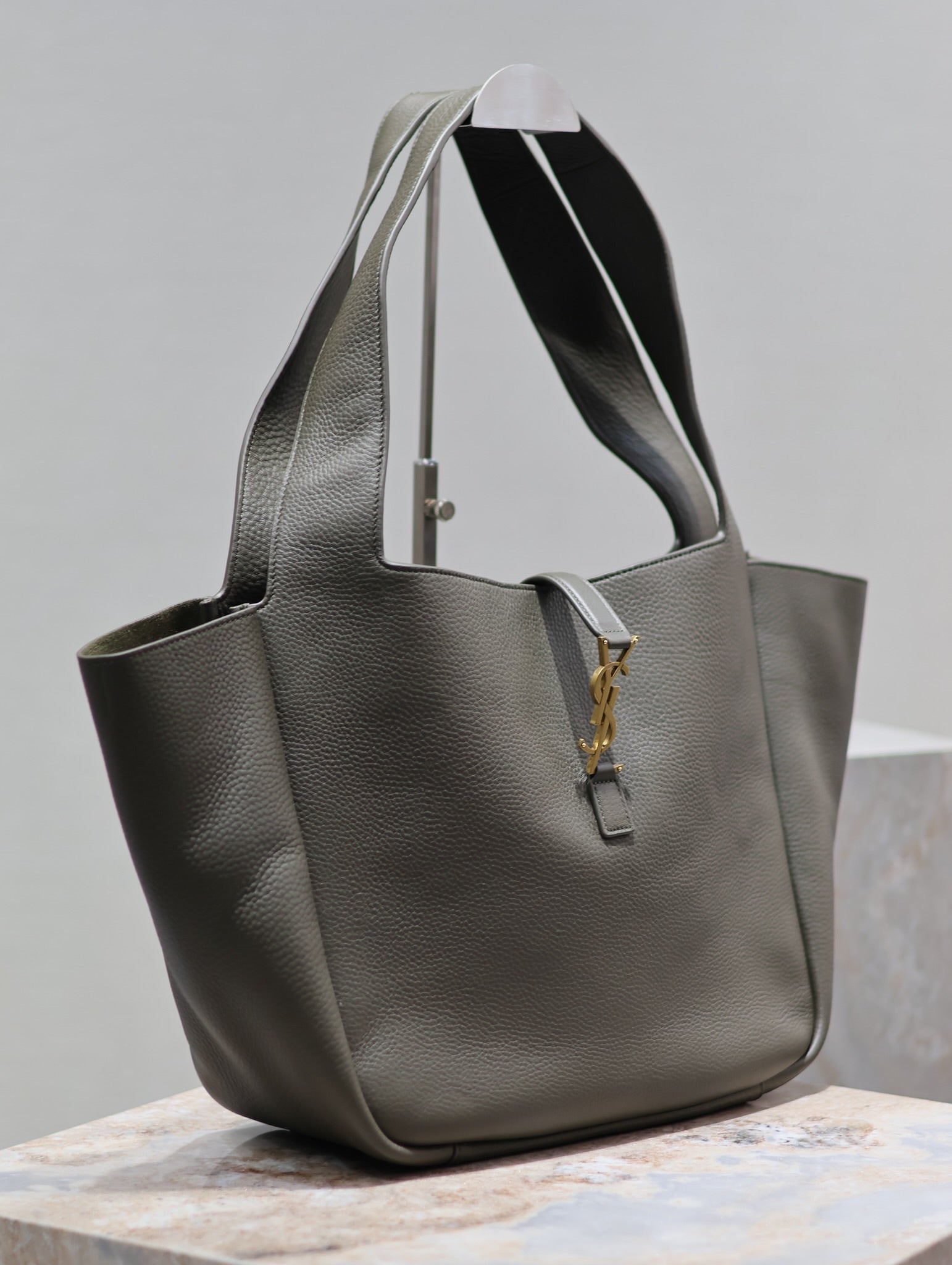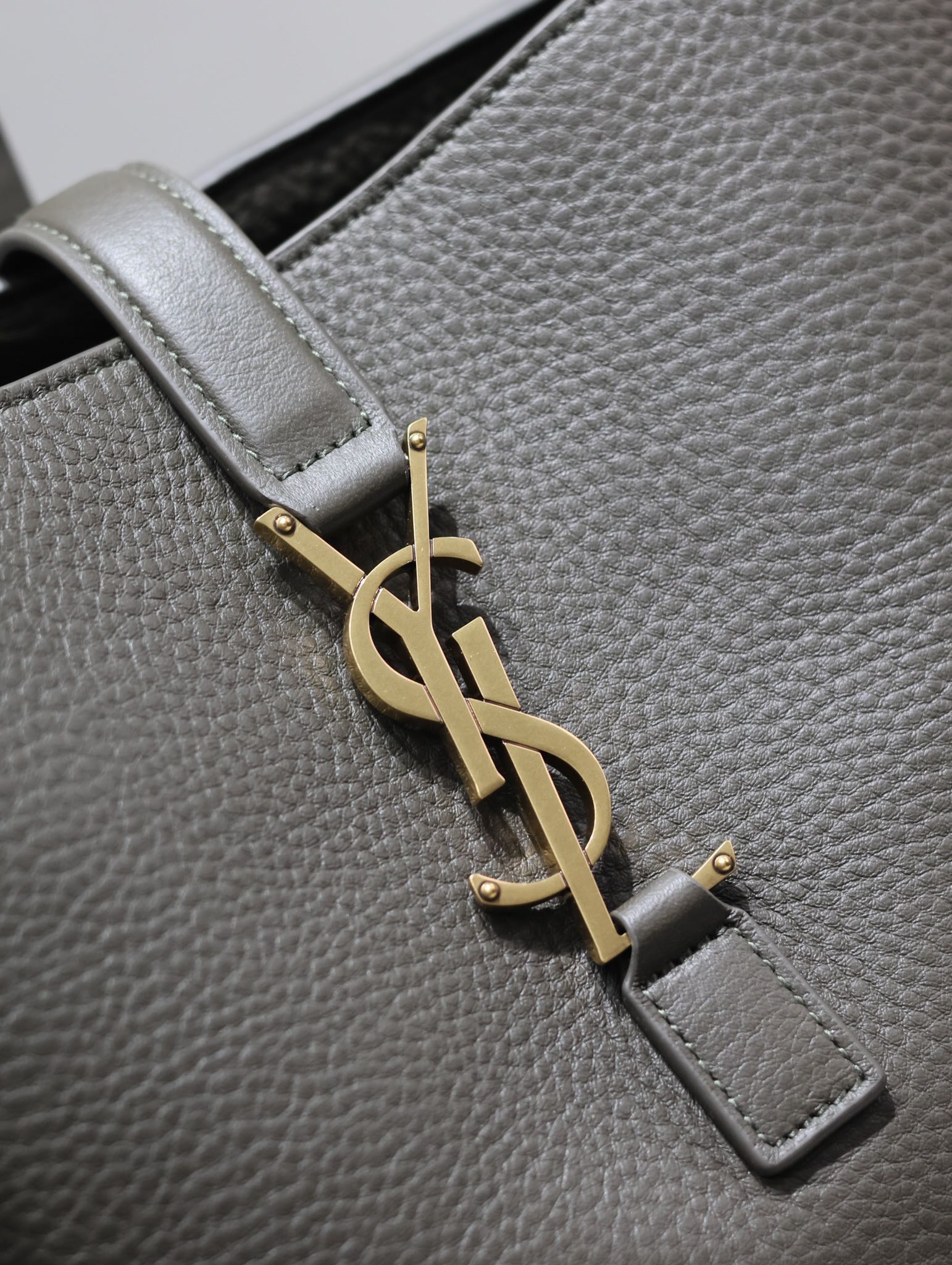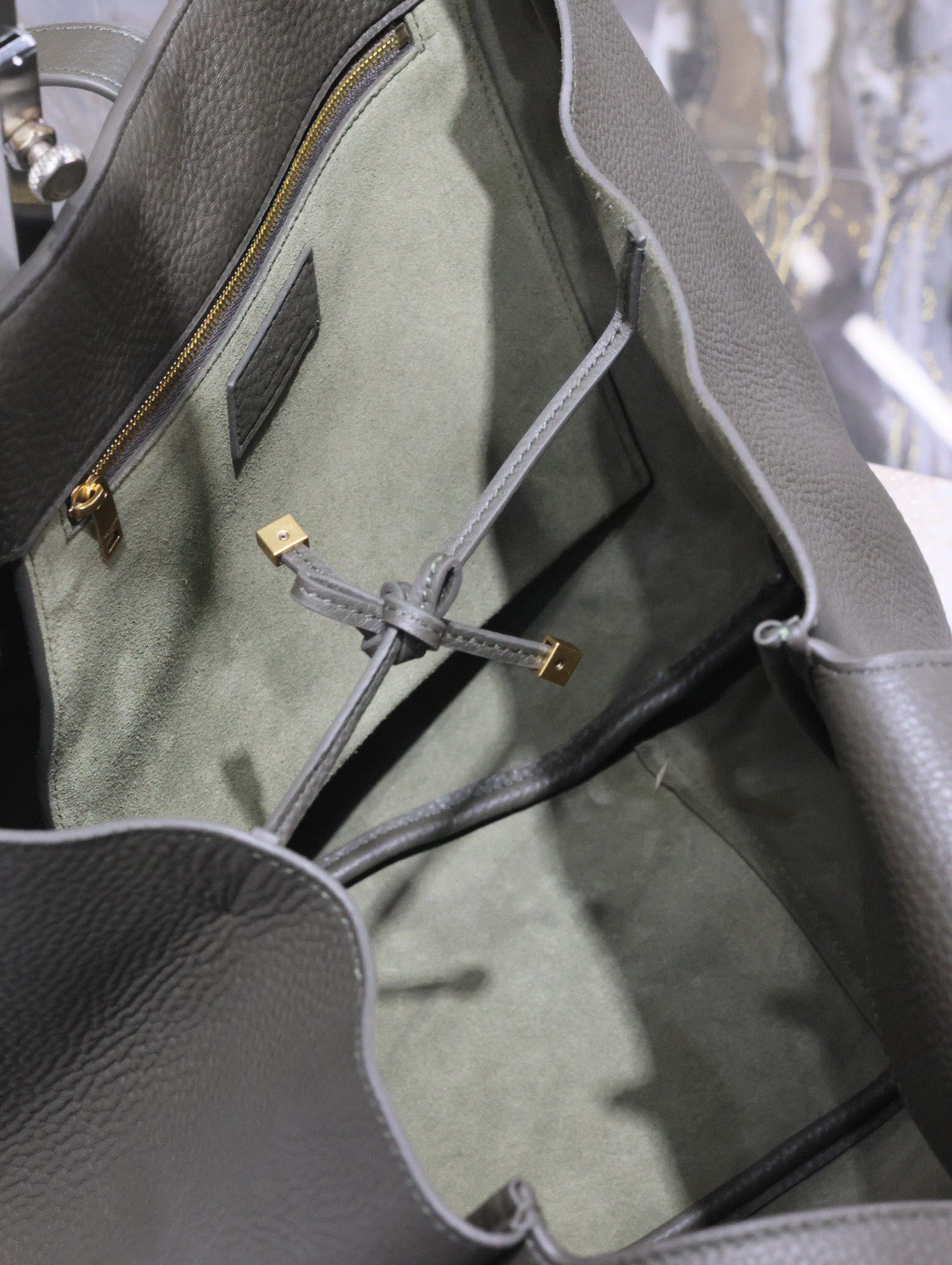 LE 5 À 7 BEA TOTE BAG 50 IN KHAKI GREEN LAMBSKIN COPPER LOGO