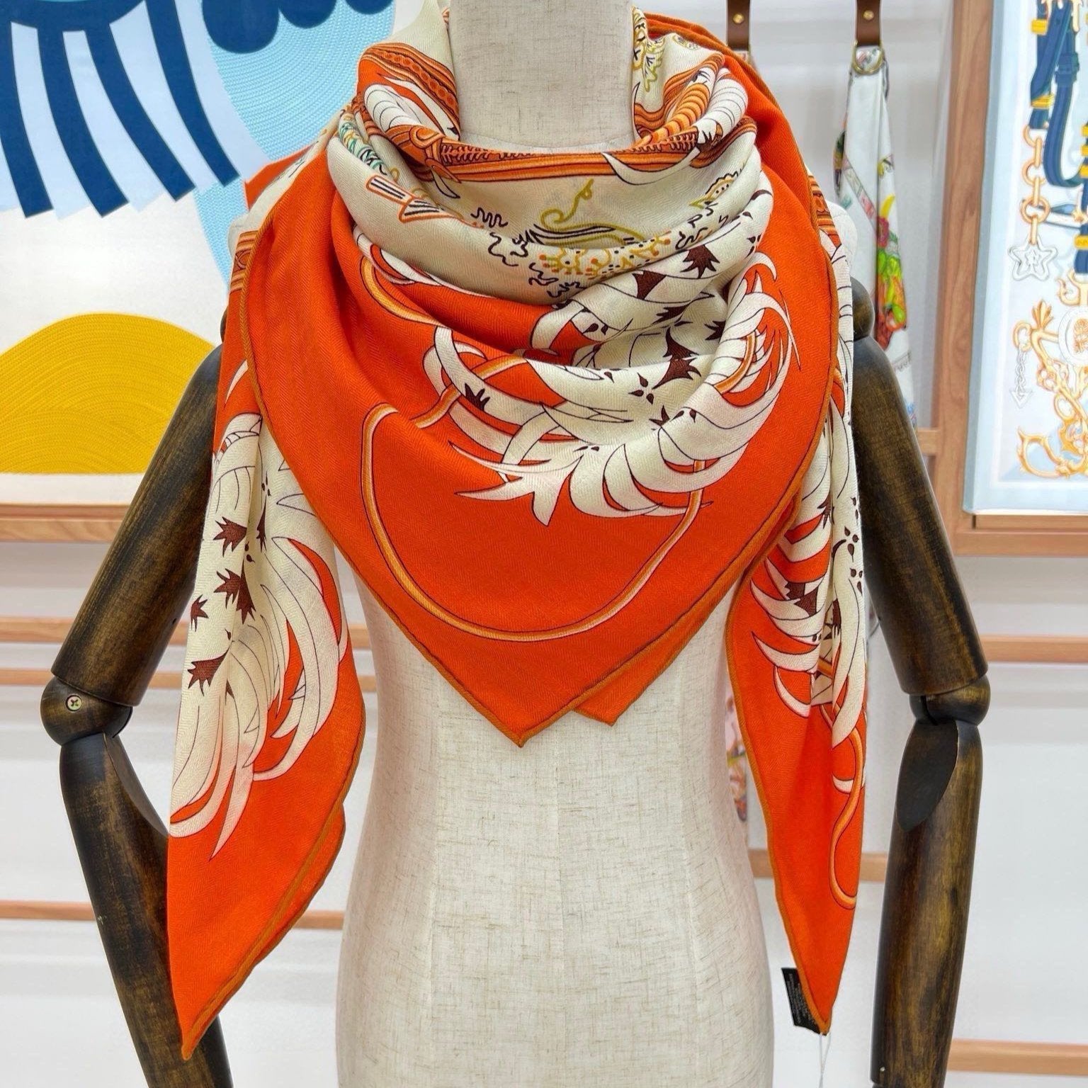 Legende Brodee Scarf 140 CM In Orange Colorful Cashmere And Silk 276519