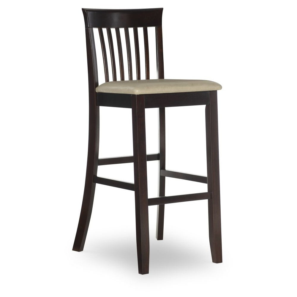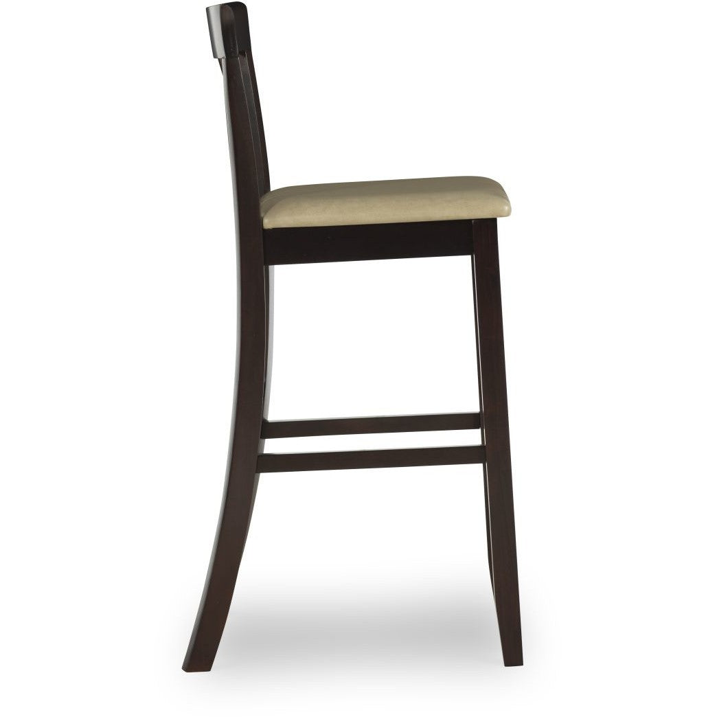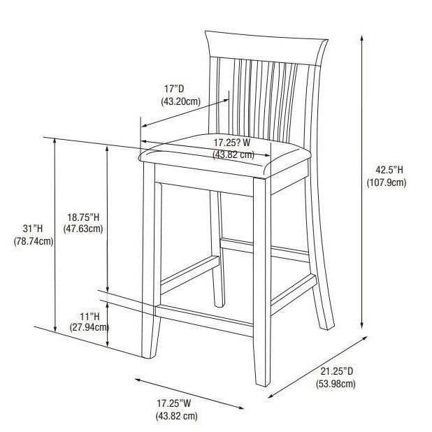 With a traditional Mission back styling, this counter stool will enhance your dining or casual gathering area with its casual charm. The wood frame is finished in a rich espresso brown and features a contrasting dove grey faux leather padded seat. The seat height is 30.75-inches from the floor, accommodating any table or bar you want to pair it with. Solid construction and quality craftsmanship have made this counter stool both sturdy and attractive. This counter stool fits beautifully into a casual or formal decor. 275 pound weight limit.